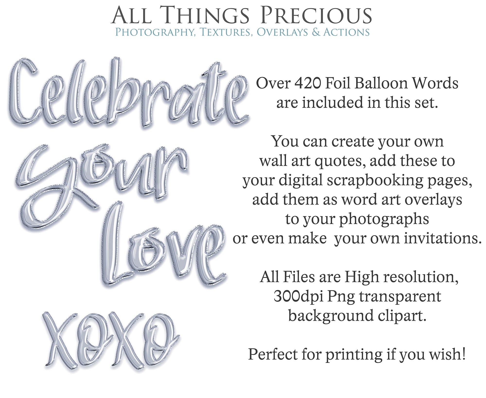 FOIL BALLOON WORDS Clipart - SILVER - FREE DOWNLOAD