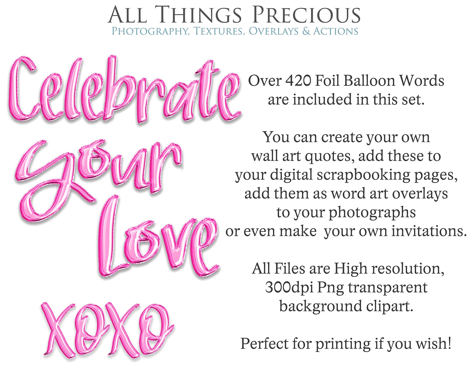 FOIL BALLOON WORDS Clipart - PINK - FREE DOWNLOAD