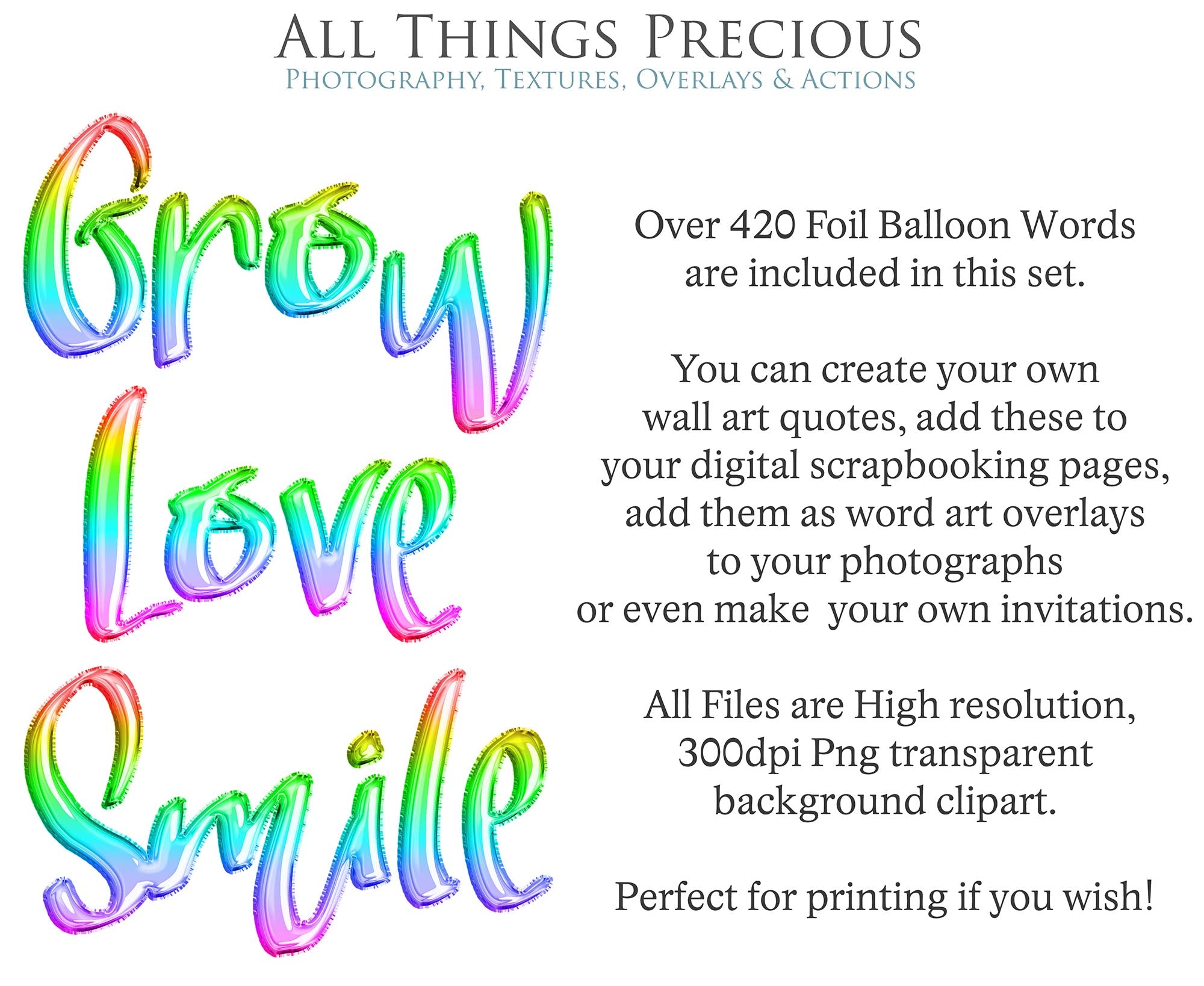 FOIL BALLOON WORDS Clipart - RAINBOW - FREE DOWNLOAD