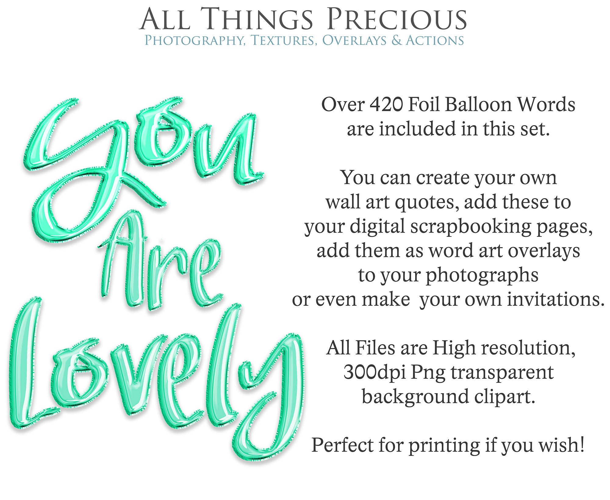 FOIL BALLOON WORDS Clipart - TEAL - FREE DOWNLOAD