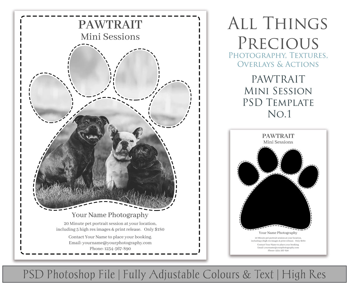 A Pawtrait Mini Session photoshop template. For your next pet photography session!