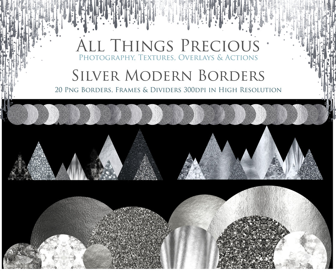 Gorgeous Modern Silver Borders, Dividers & Frames. A lovely addition to your beautiful photography, scrapbooking or digital art work!