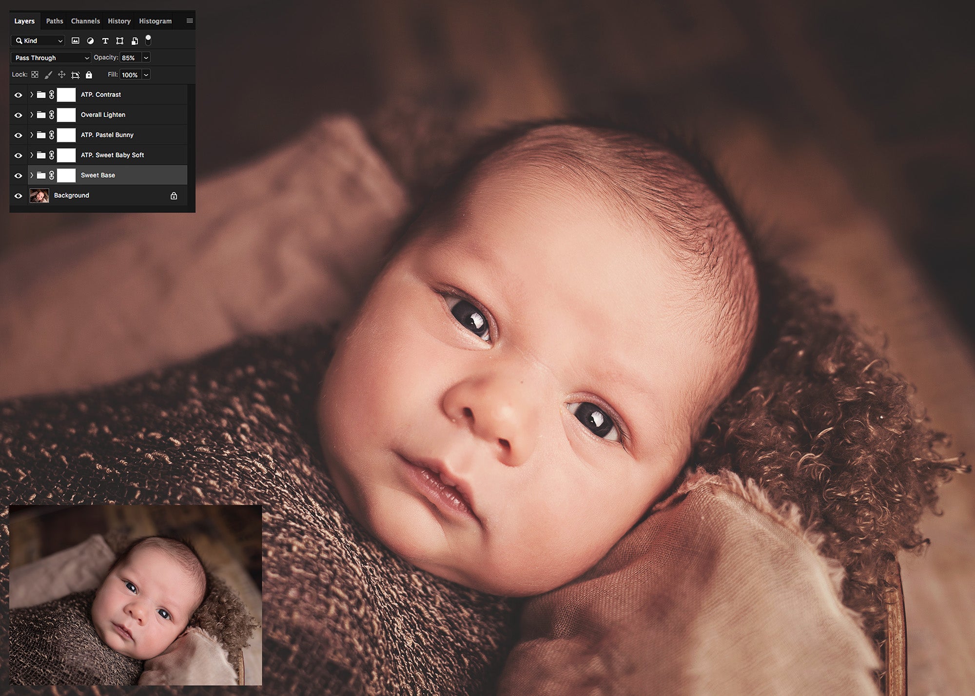 BASE action. - This is for all your contrast, light and warming tone adjustments.