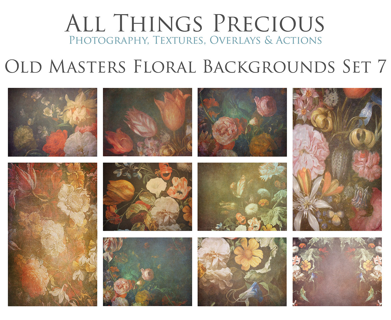 10 OLD MASTERS Floral Background TEXTURES / DIGITAL BACKDROPS - Set 7