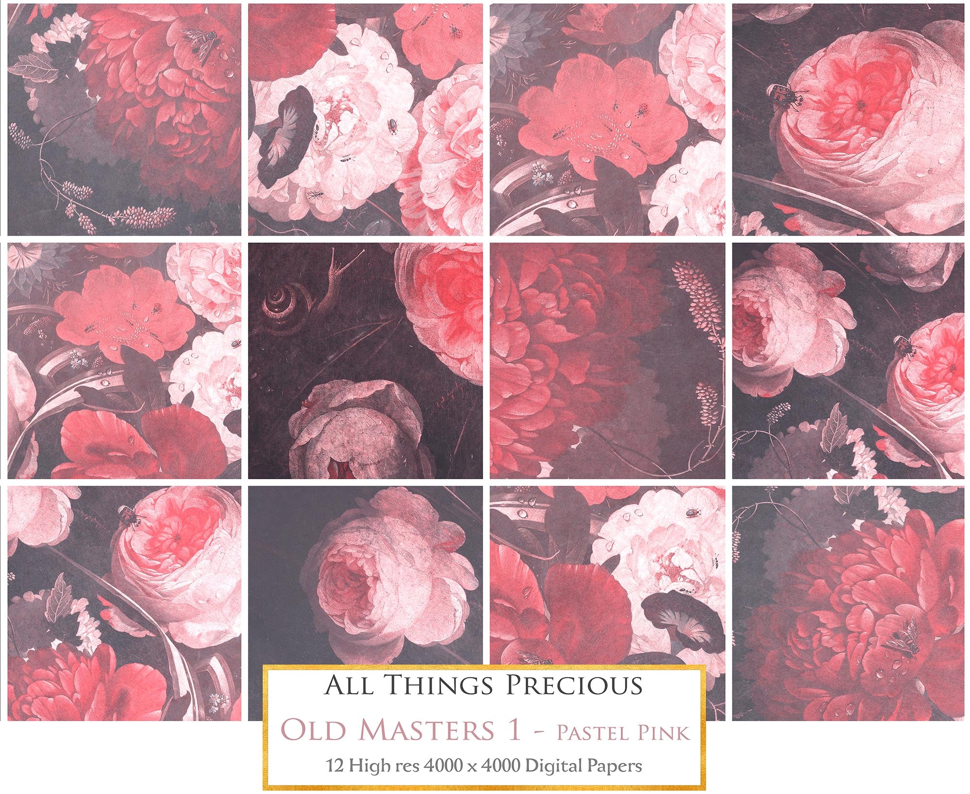 OLD MASTERS FLORAL Set 1 - PASTEL PINK - Digital Papers