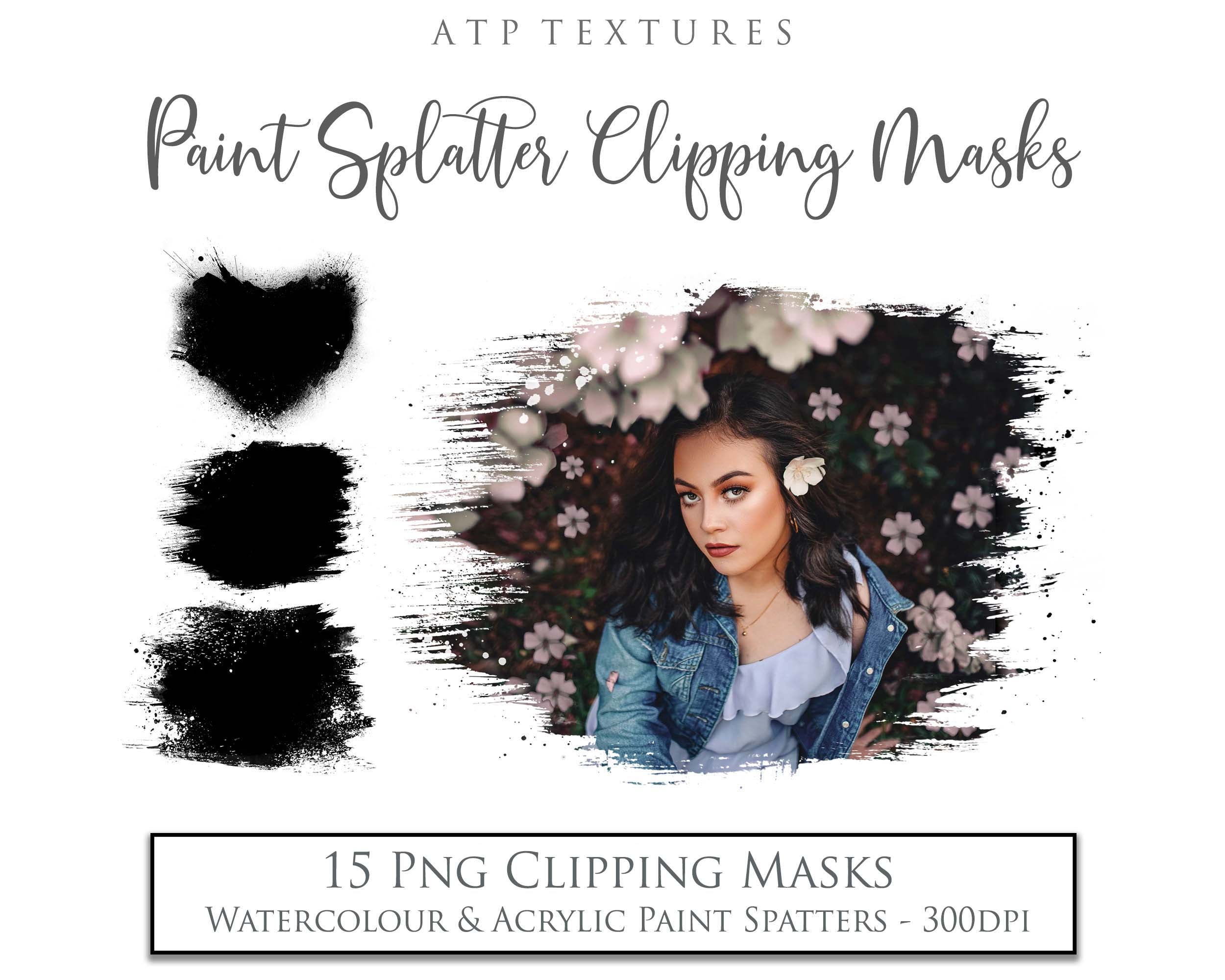 15 PNG Paint Splatter Clipping Masks.