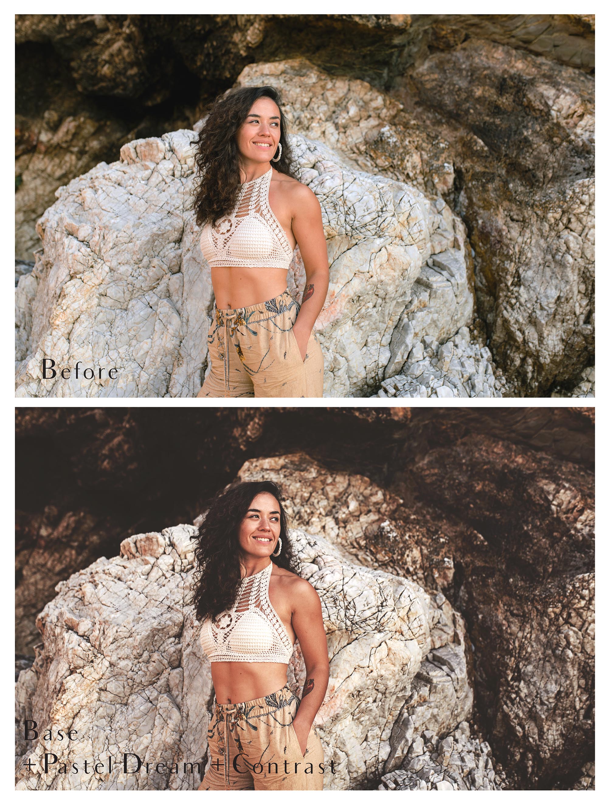BASE action. - This is for all your contrast, light and warming tone adjustments.