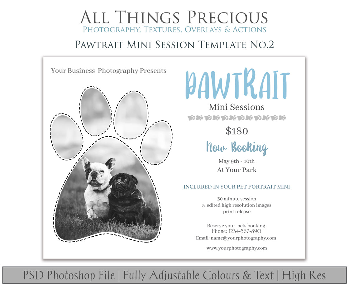 This Template is available for personal use and commercial use. You cannot resell, upload, share or distribute the file as a PSD. But you can use it flattened for all your marketing needs, to promote your business or photography session.