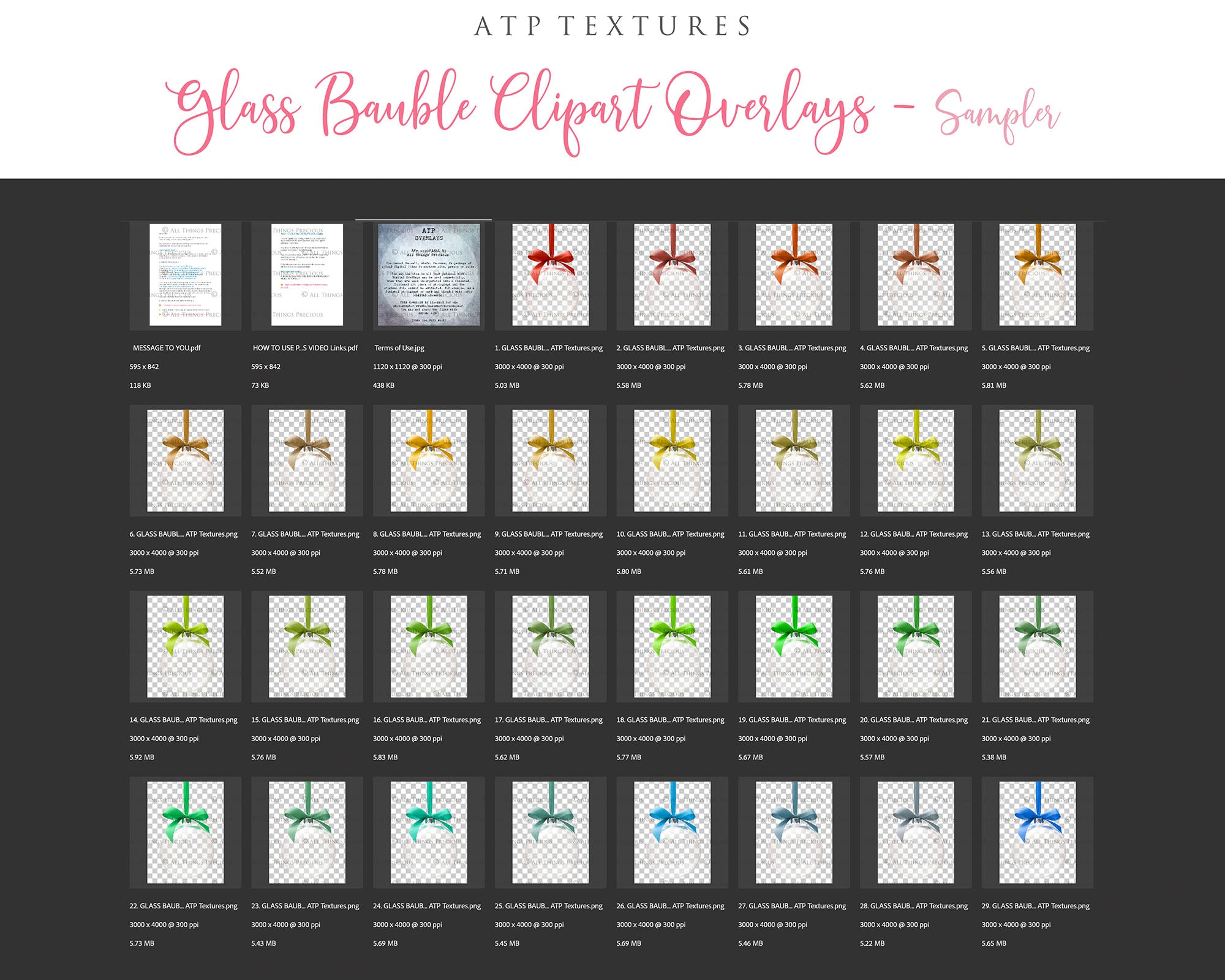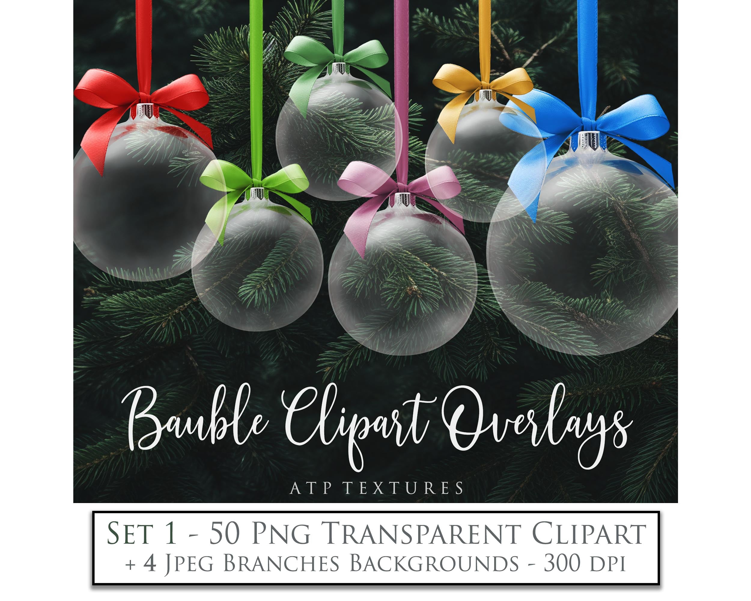 Png CHRISTMAS GLASS BAUBLE Digital Overlays - Set 1