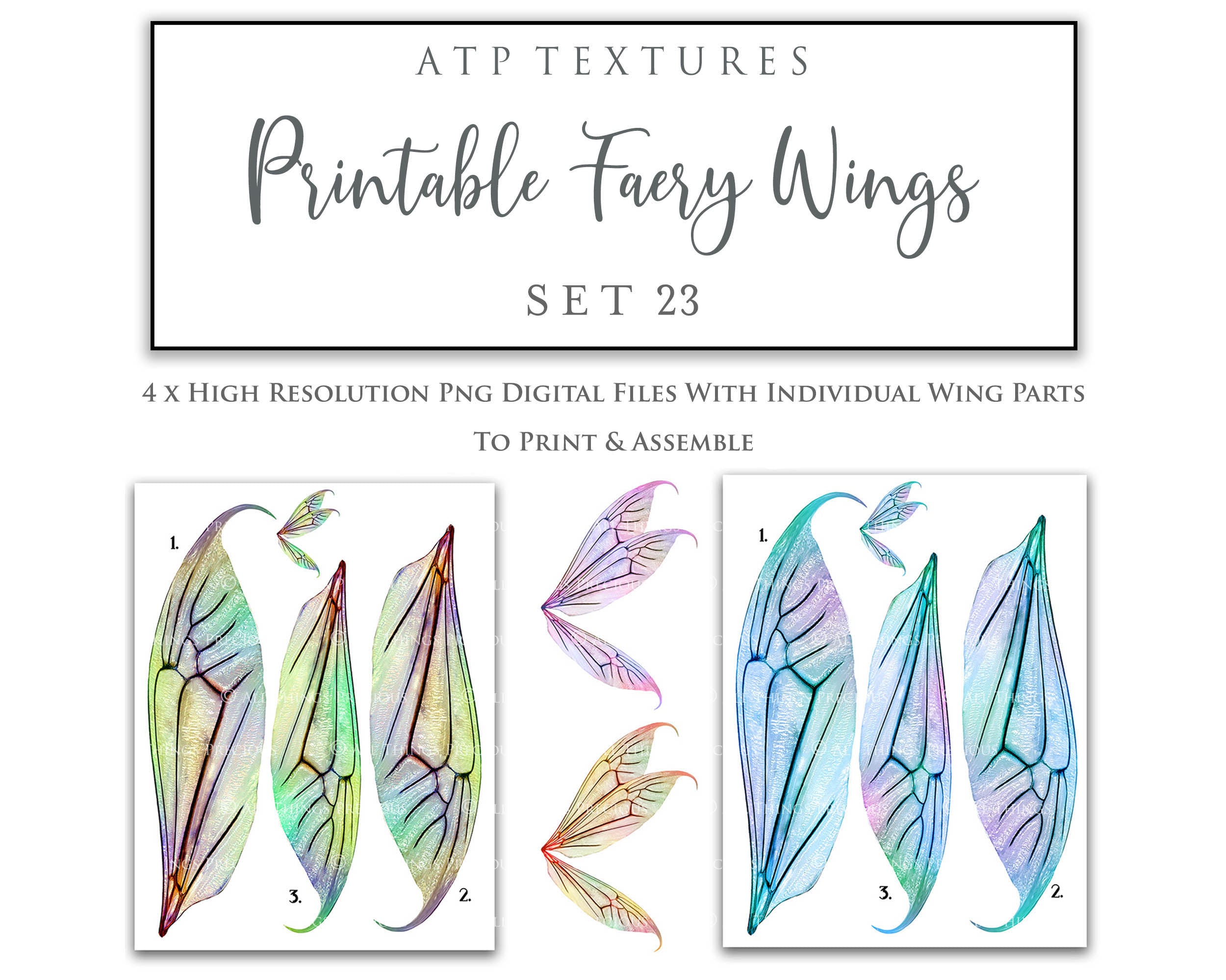 + You can incorporate the wings in your photography as an overlay, in a flattened state, without a commercial licence. You will need to add a link to ATP Textures with your listing when selling or advertising your work on the internet, eg. Etsy, Facebook or Instagram. If you are a professional photographer supplying a finished, printed photograph to clients, you DO NOT have to credit ATP Textures.
