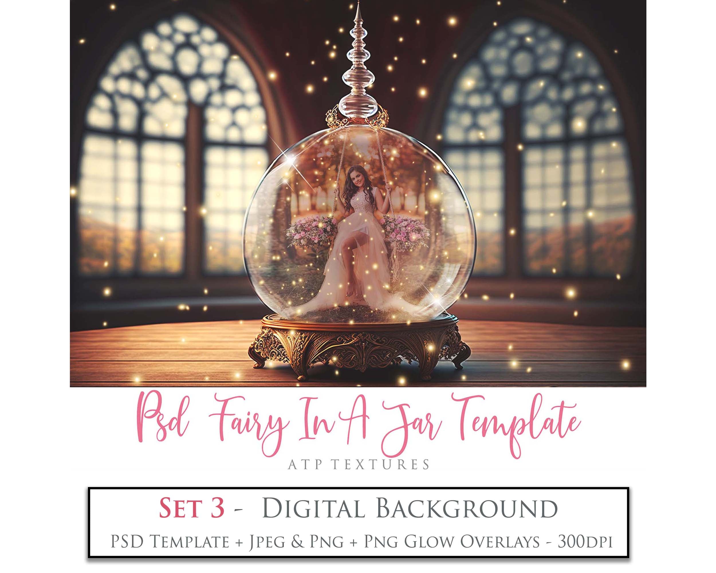 Digital PSD Fairy In A Jar Template, with Glow Overlays included in the set.