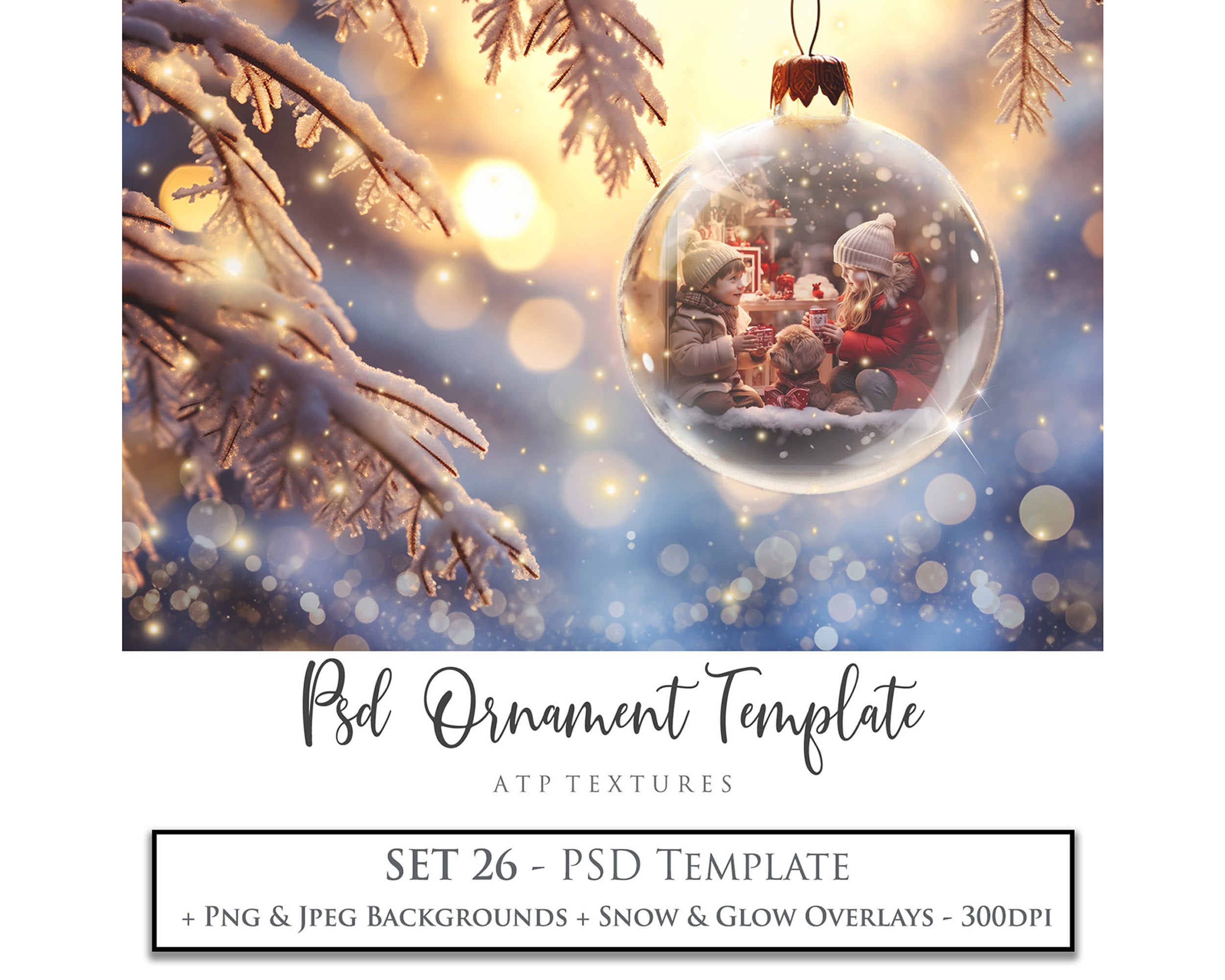 PSD Template - CHRISTMAS GLASS ORNAMENT DIGITAL BACKGROUND - Set 26