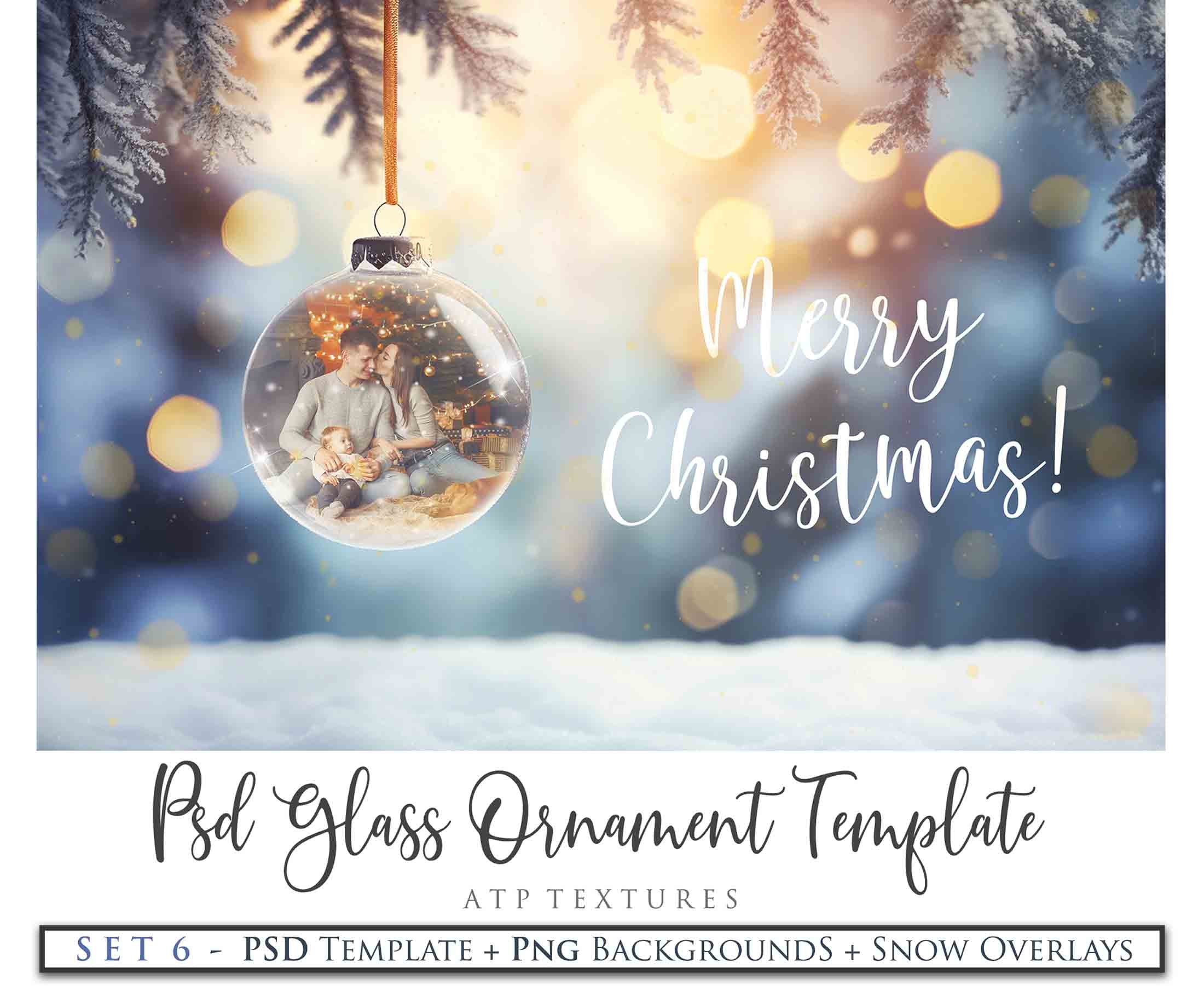 PSD Template - CHRISTMAS GLASS ORNAMENT DIGITAL BACKGROUND - Set 6