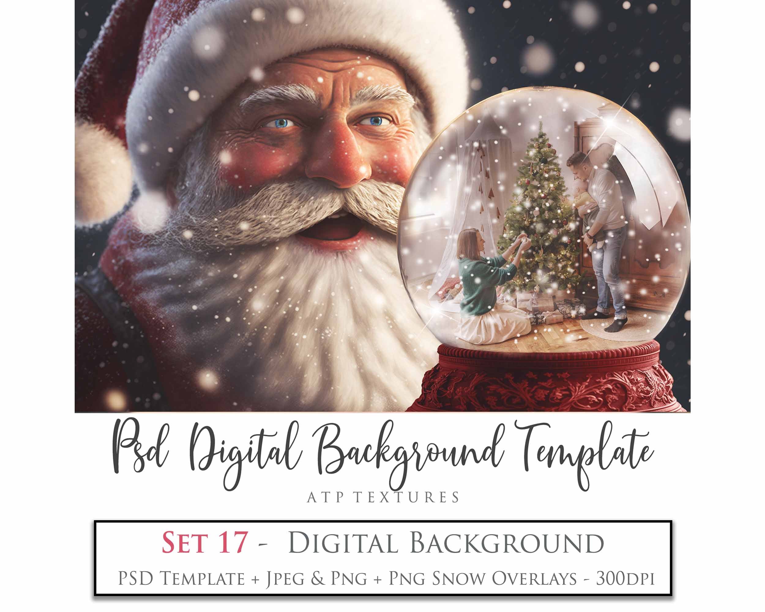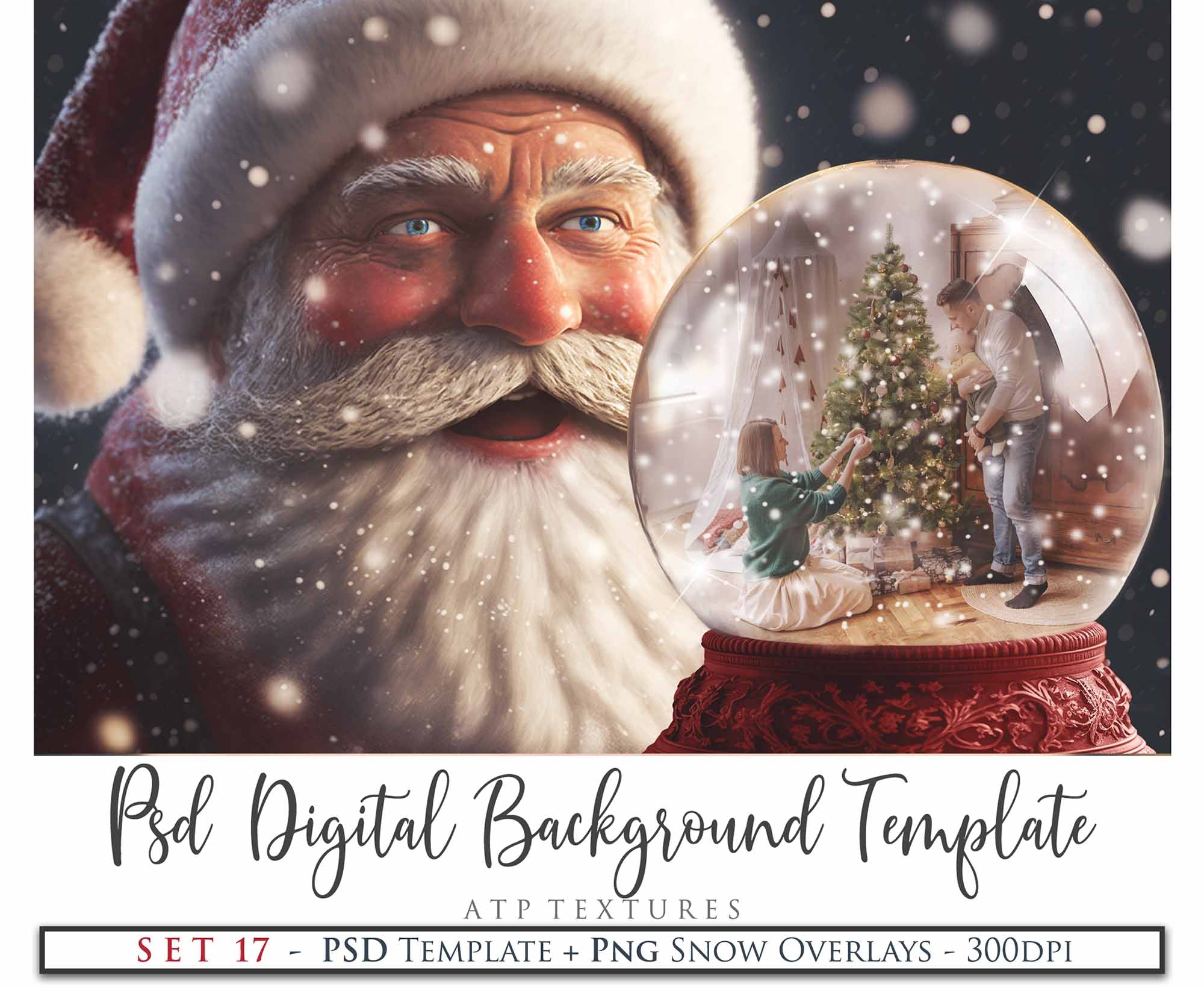 PSD Template - SNOW GLOBE DIGITAL BACKGROUND - Set 17