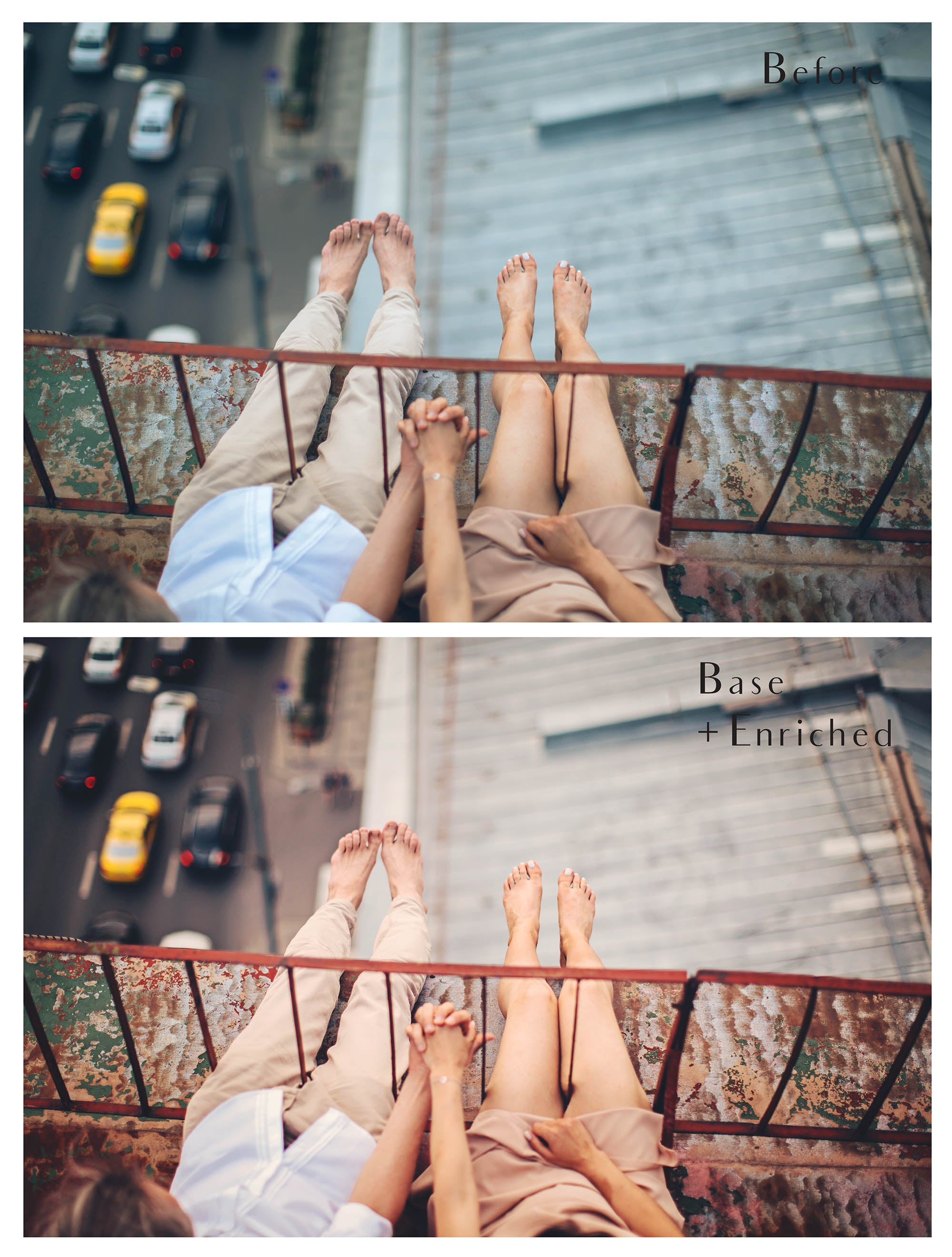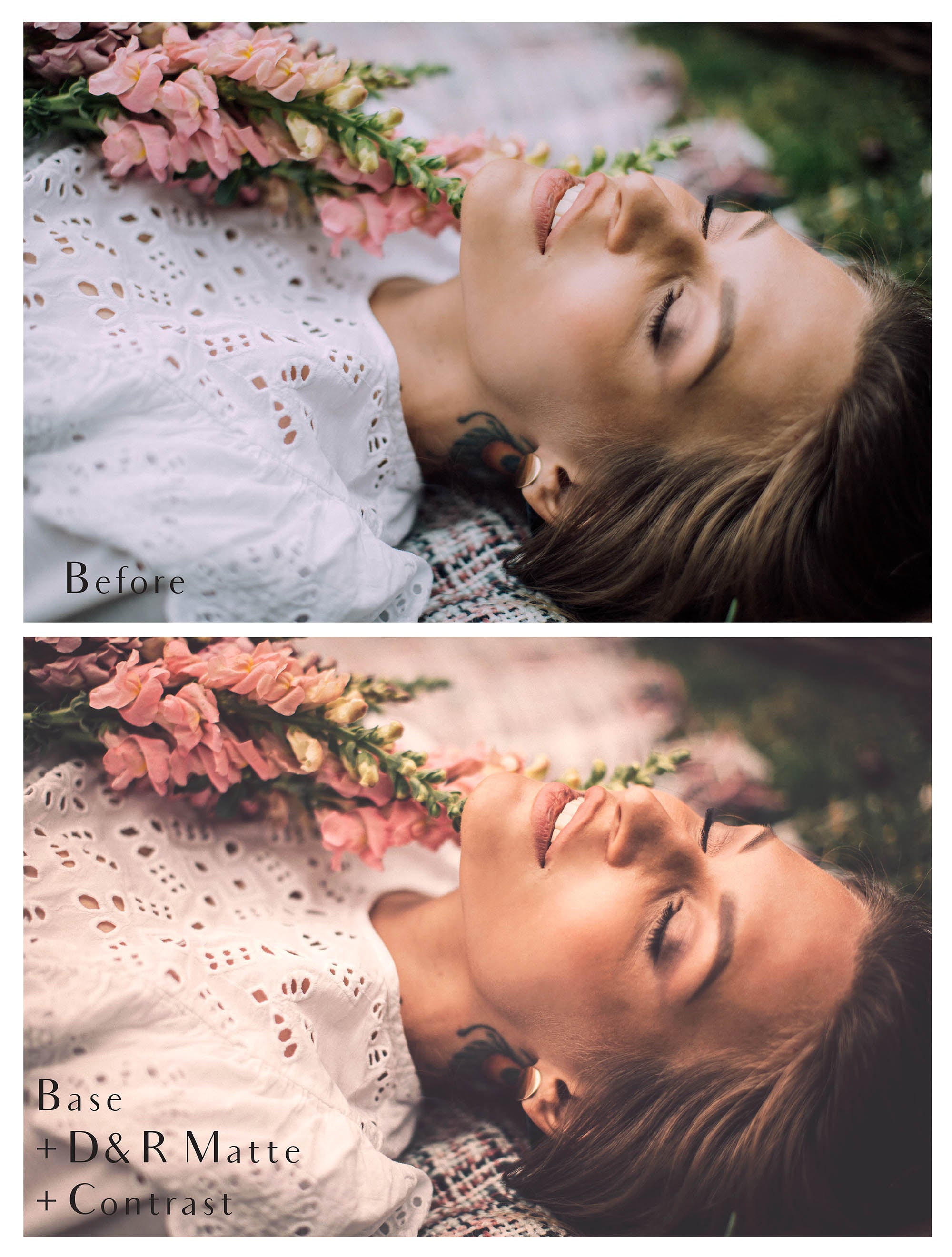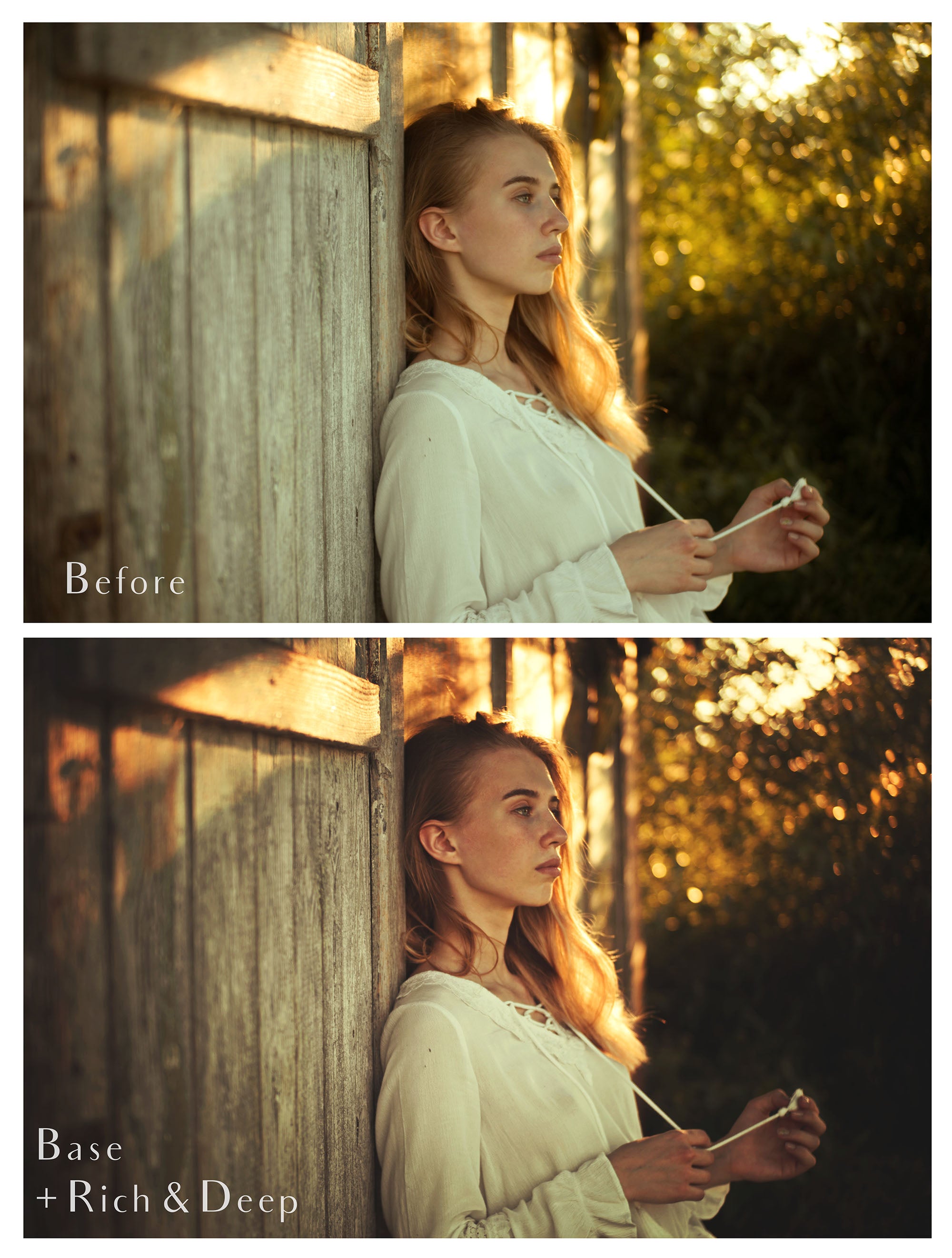 BASE action. - This is for all your contrast, light and warming tone adjustments.