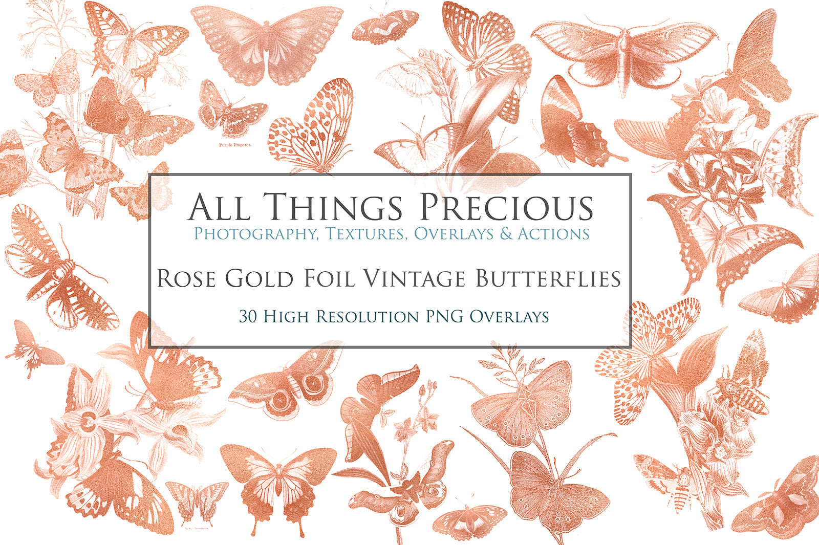 30 High Resolution PNG Clipart Elements, with a Rose Gold Foil overlay.