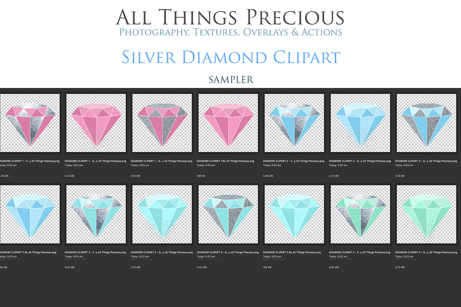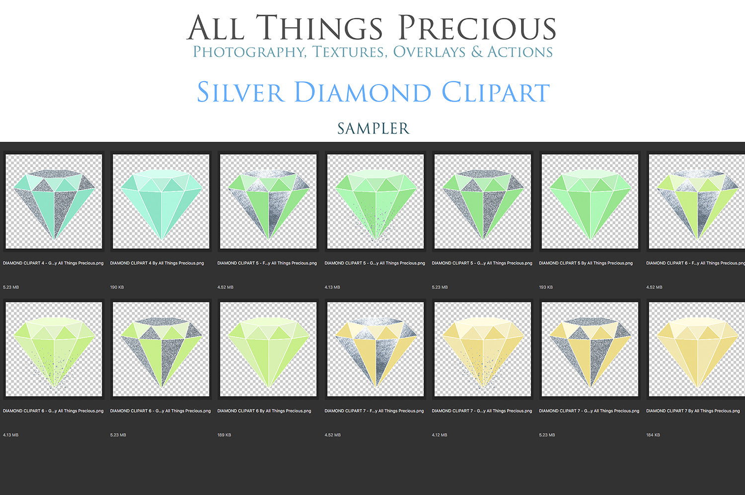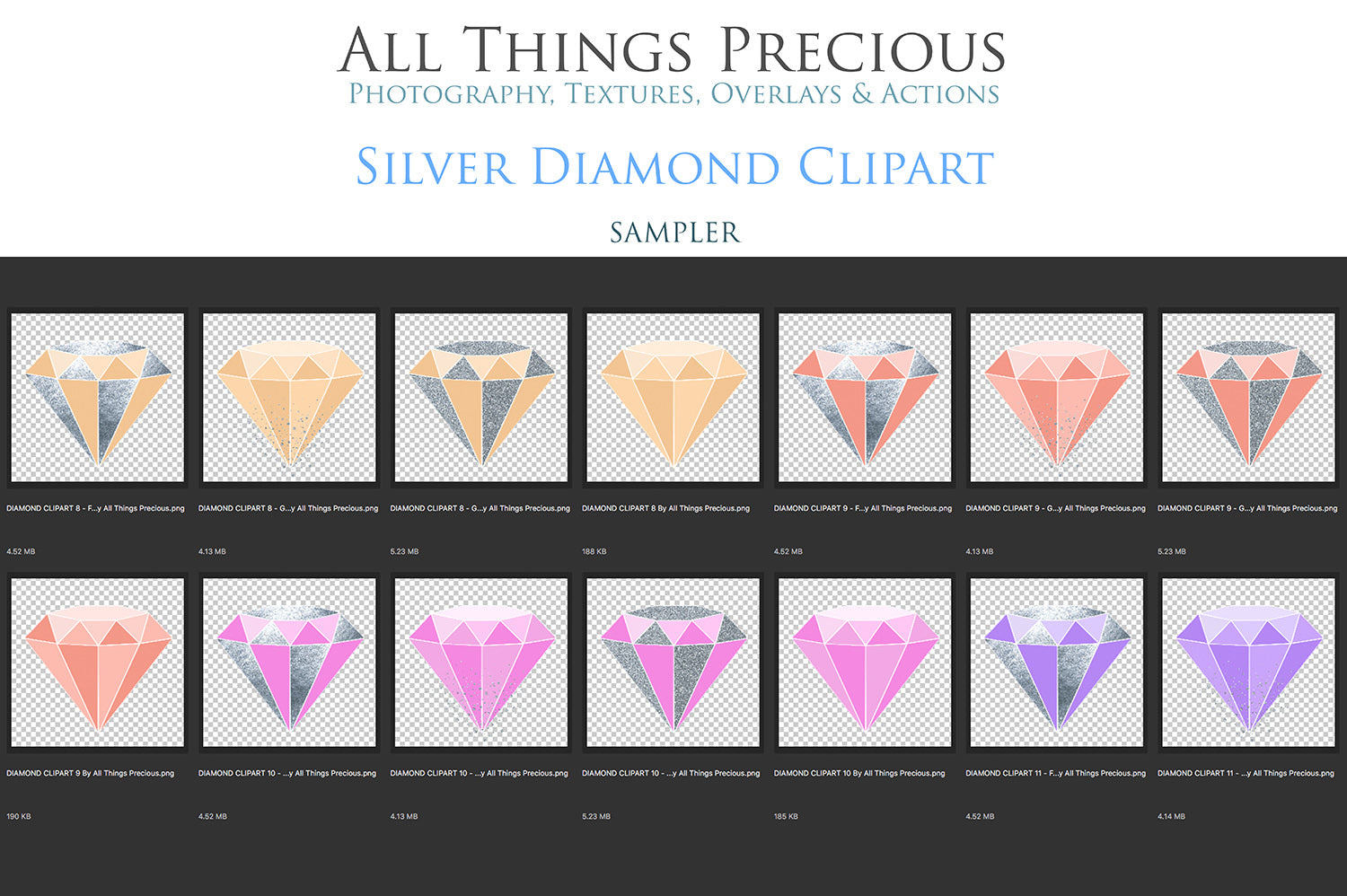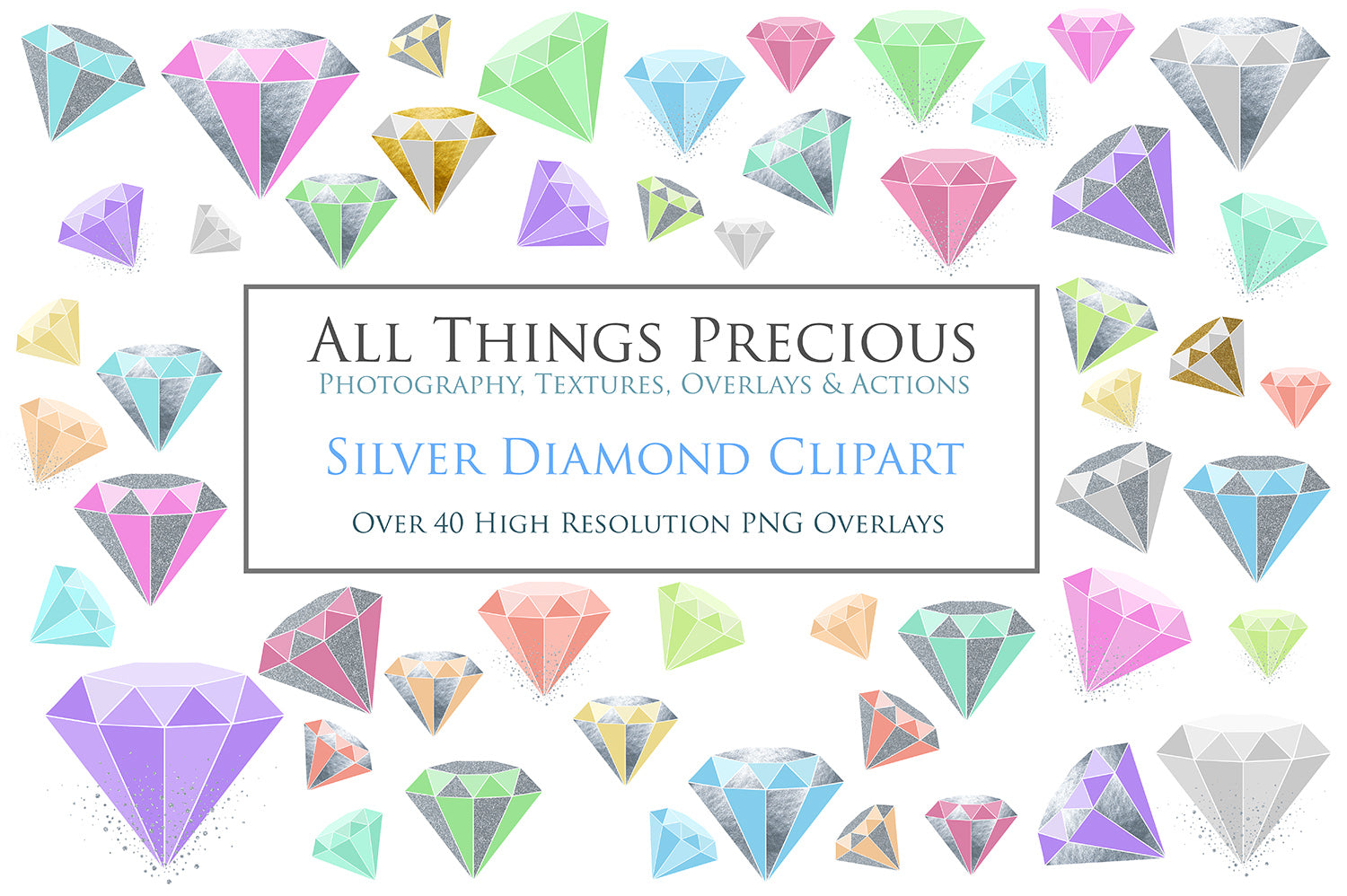 Over 40 Clipart Diamonds in pretty pastels and silver.