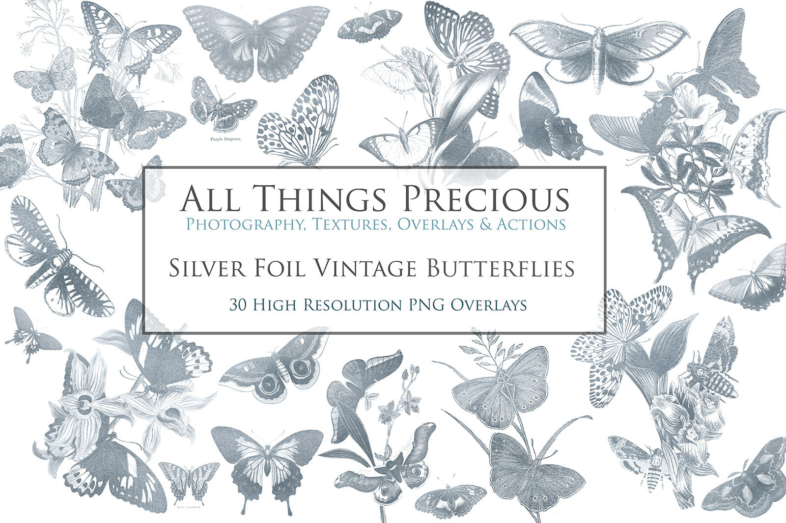 30 High Resolution PNG Clipart Elements, with a Silver Foil overlay.