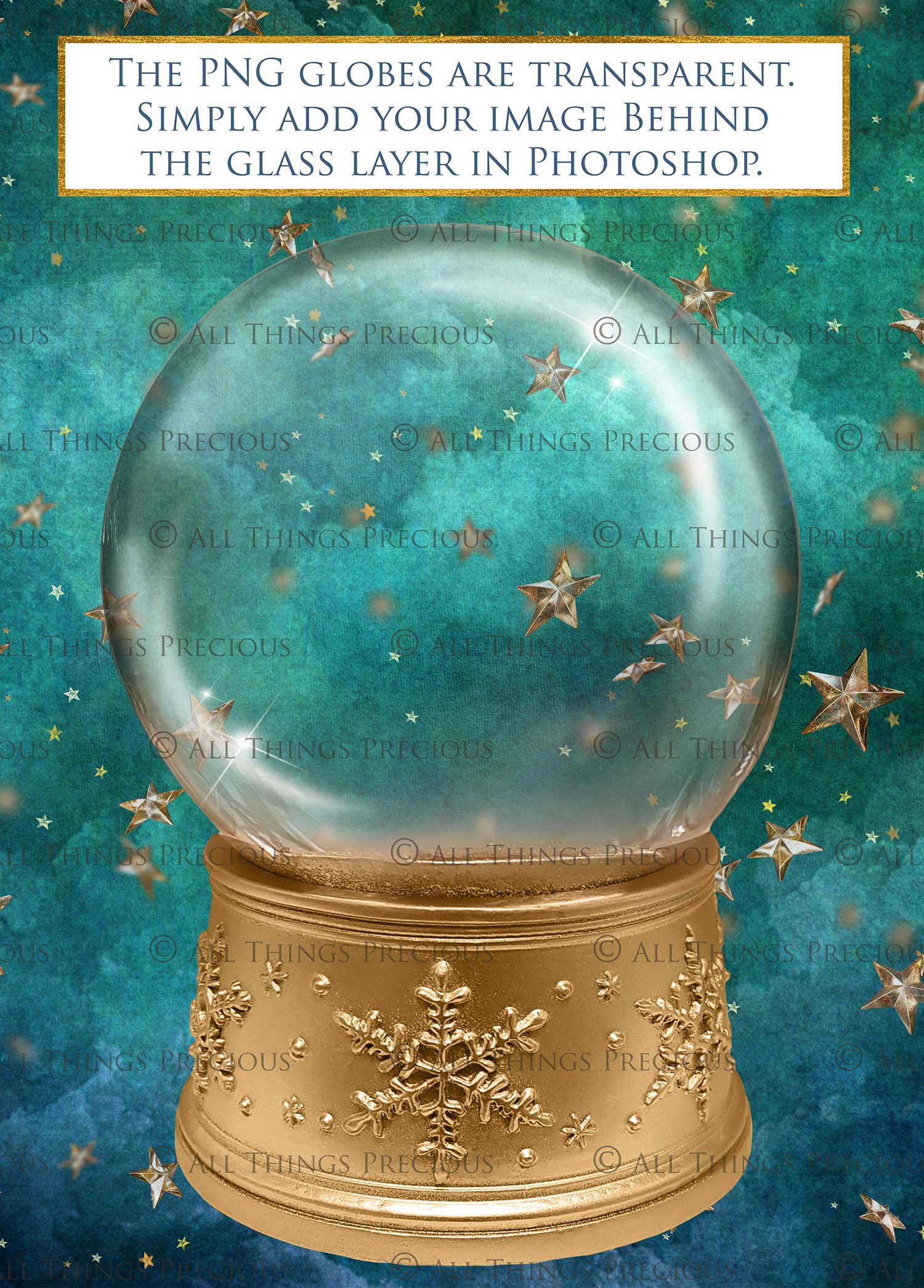 Digital Christmas Snow Globe overlays, with Star Fall Overlays and a PSD Template included in the set.