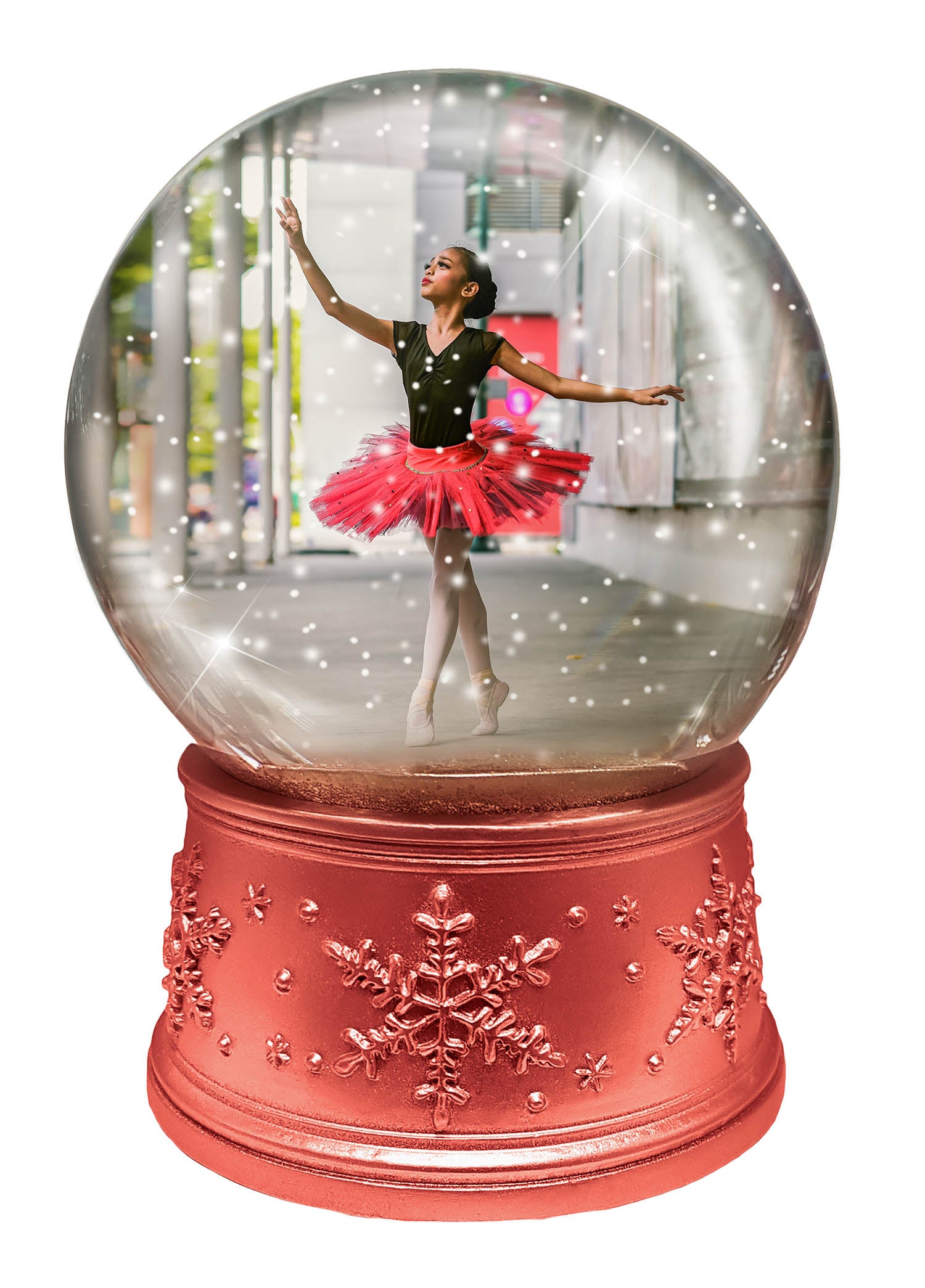 The globe is transparent, perfect for you to add your own images and retain the snow globe effect.
