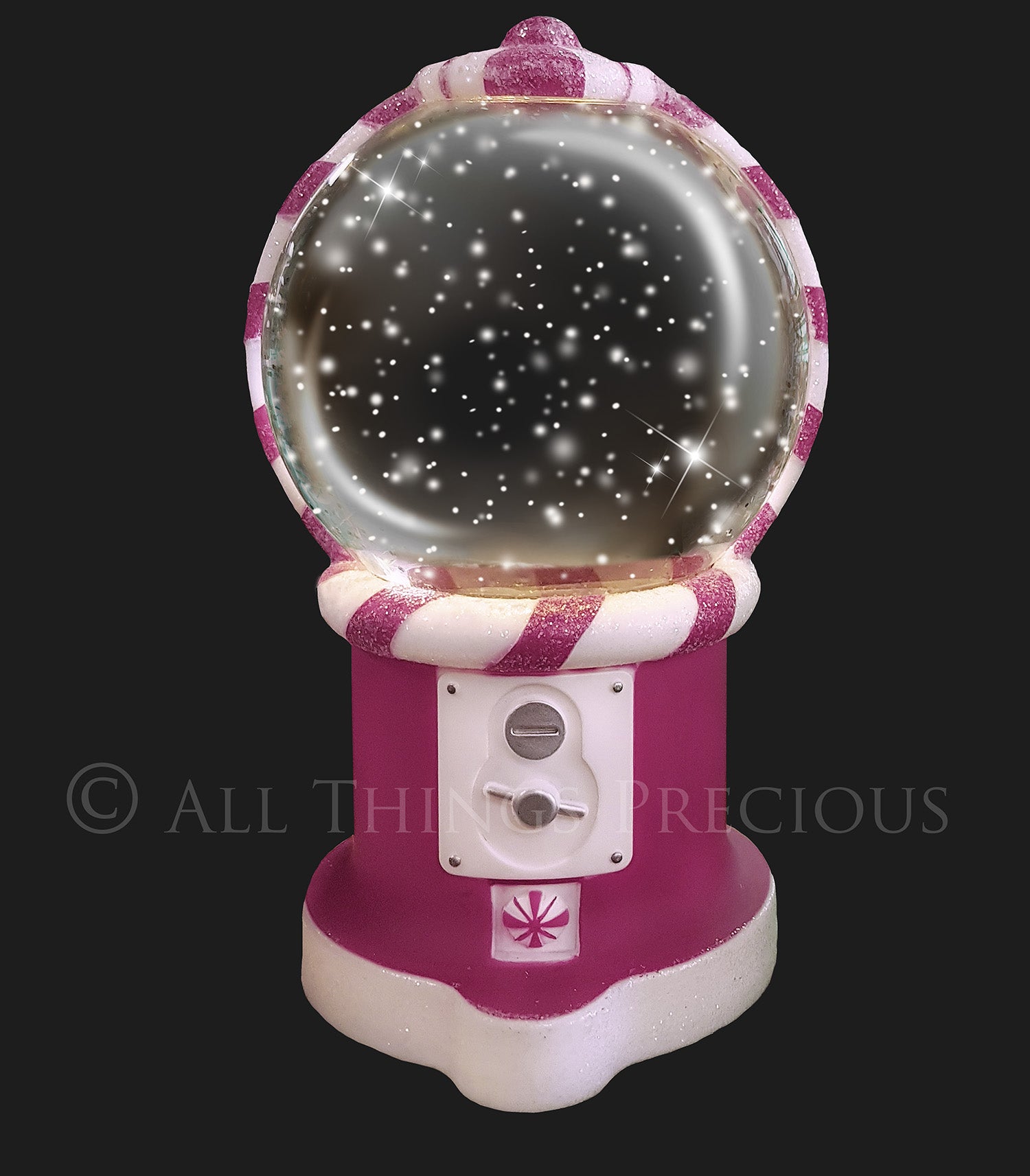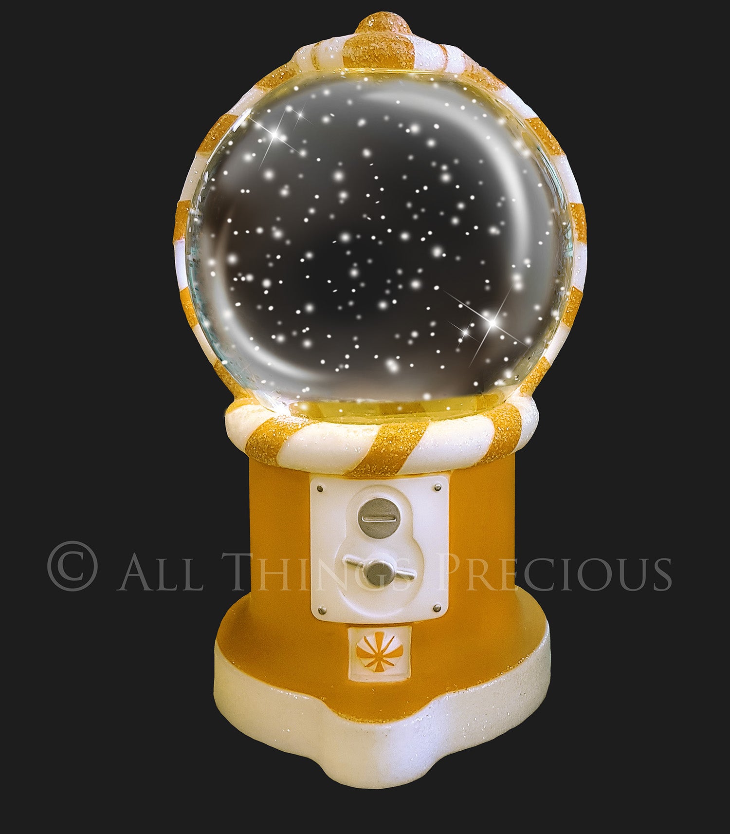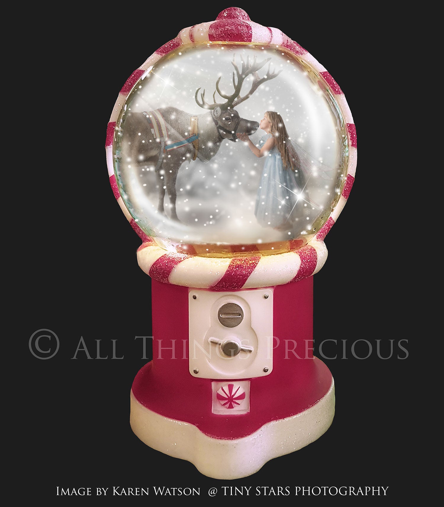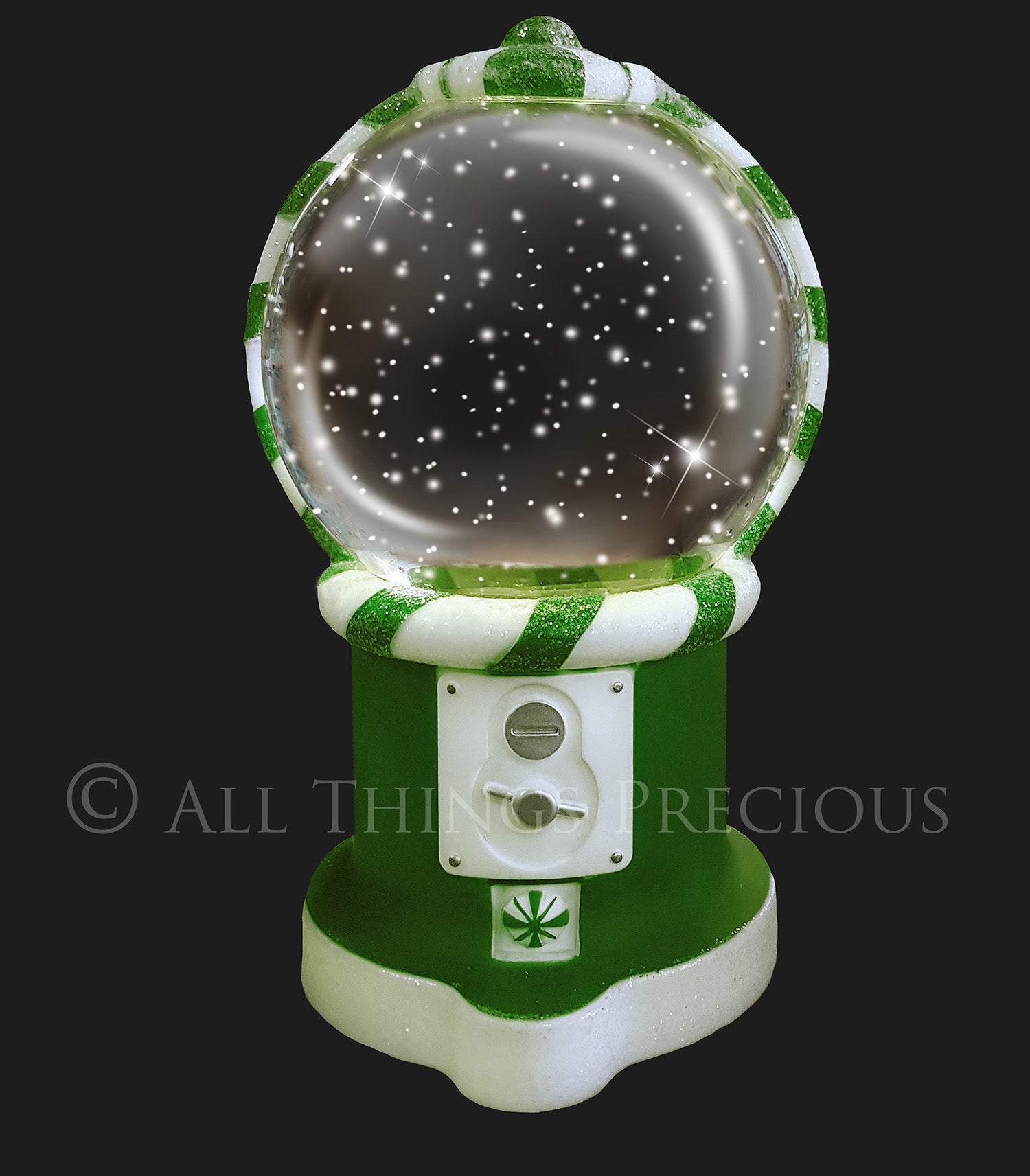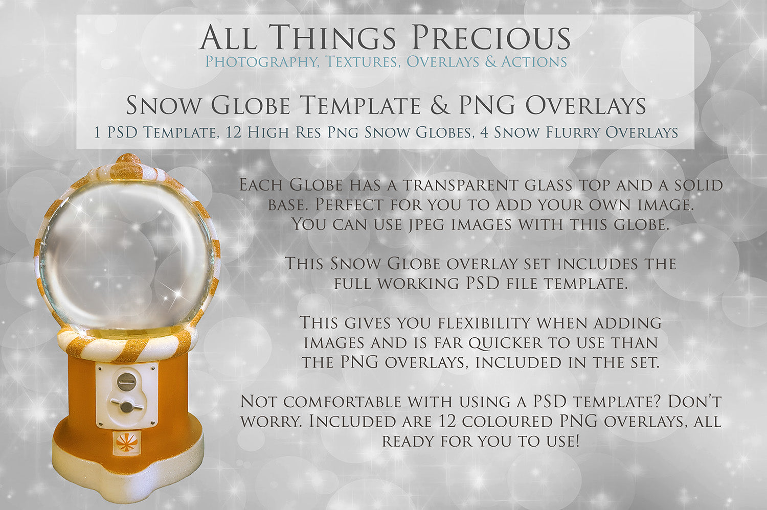 Digital Candy Dispenser Snow Globe overlays, with 4 Snow Flurries Overlays and a PSD Template included in the set.