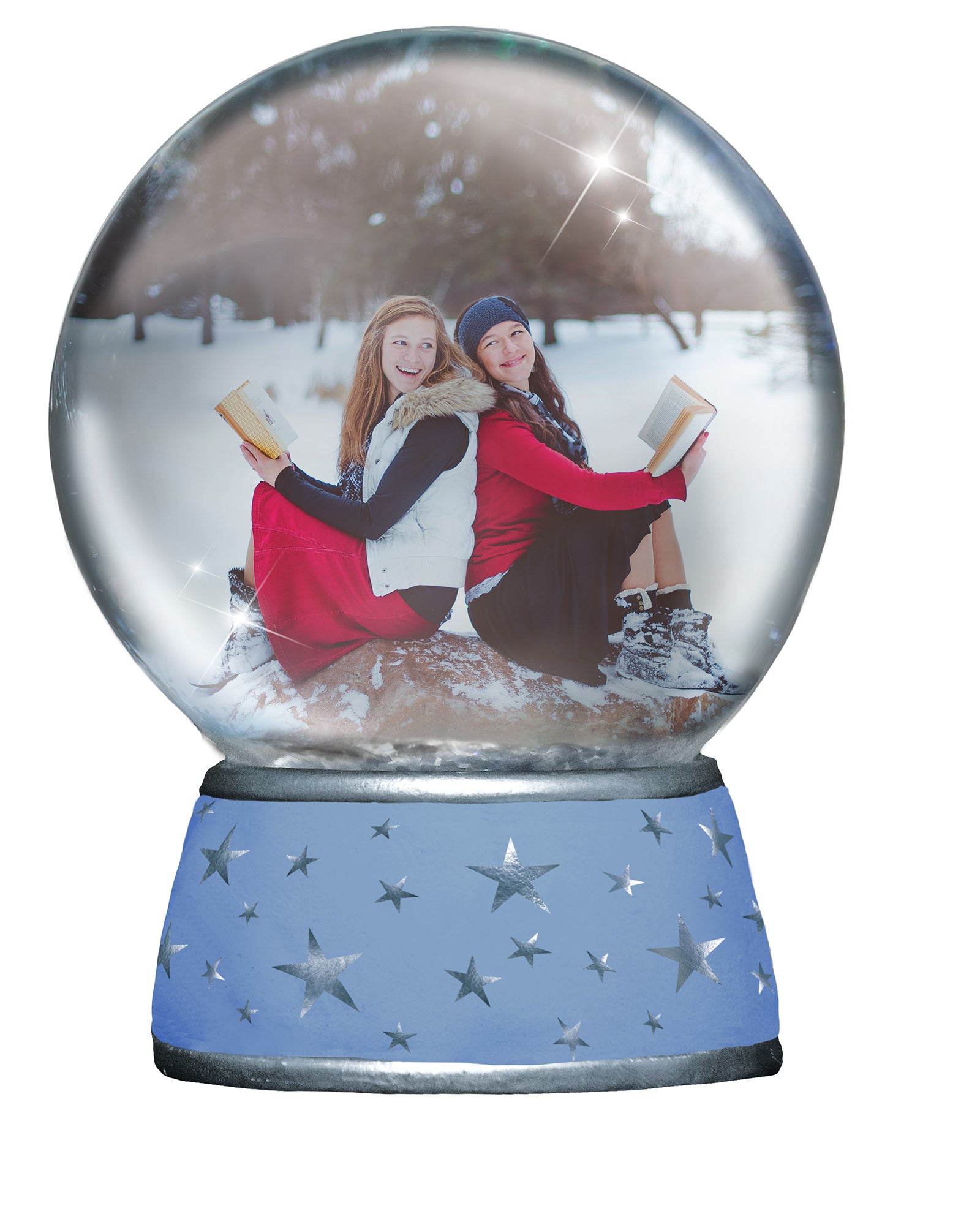 Digital Christmas Snow Globe overlays, with snow flurries.