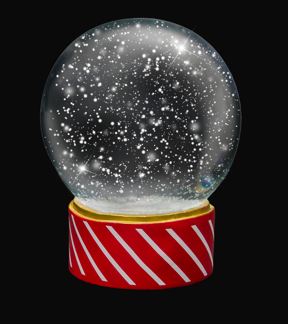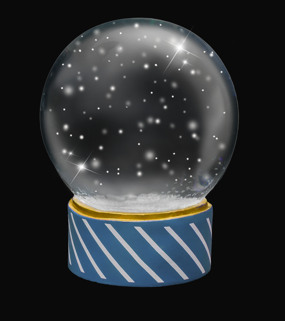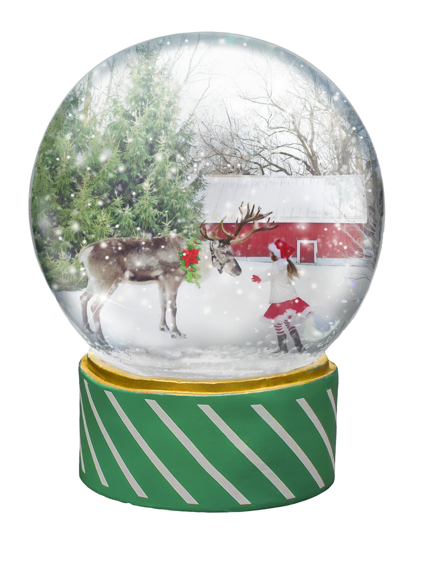 The globe is transparent, perfect for you to add your own images and retain the snow globe effect.