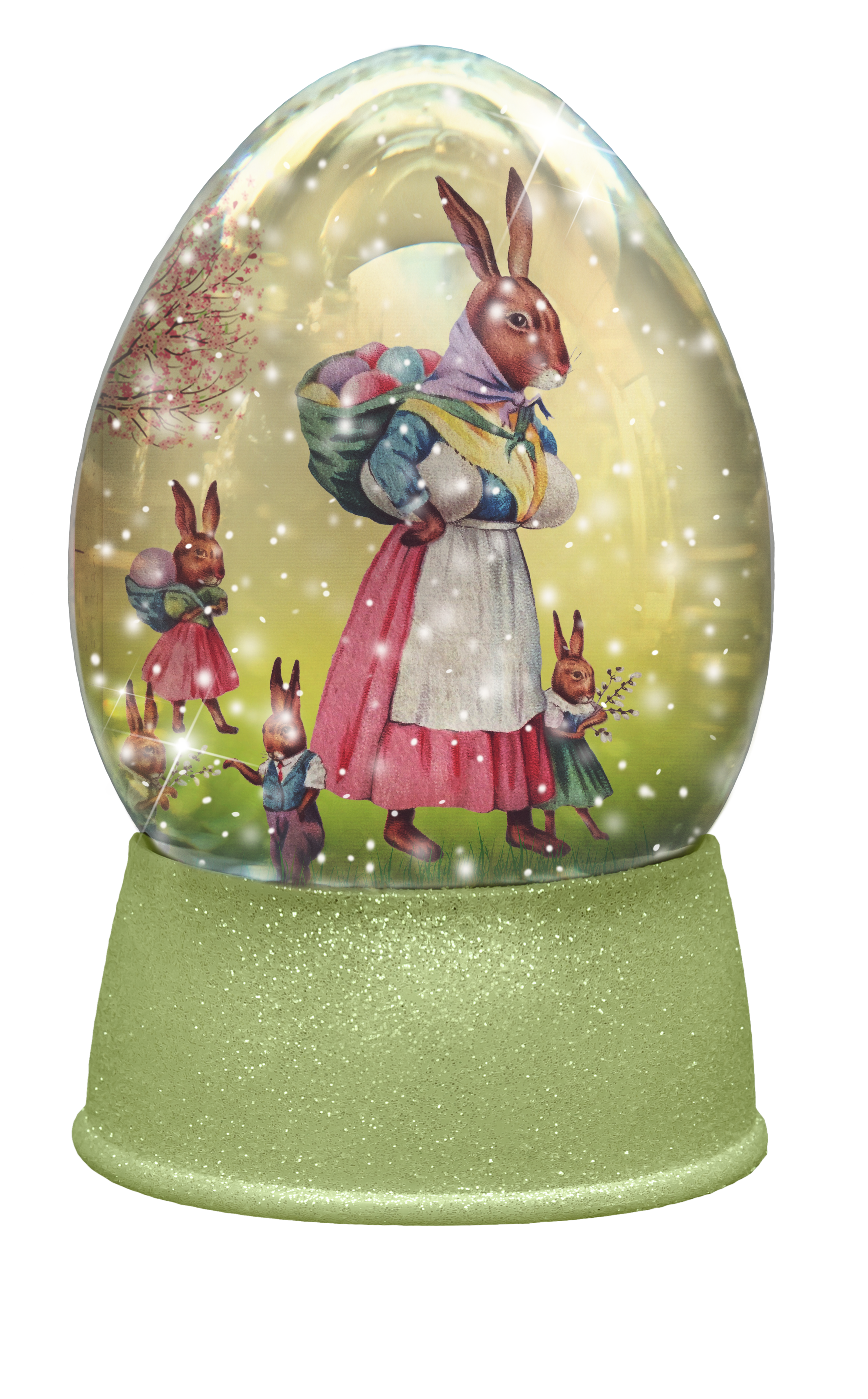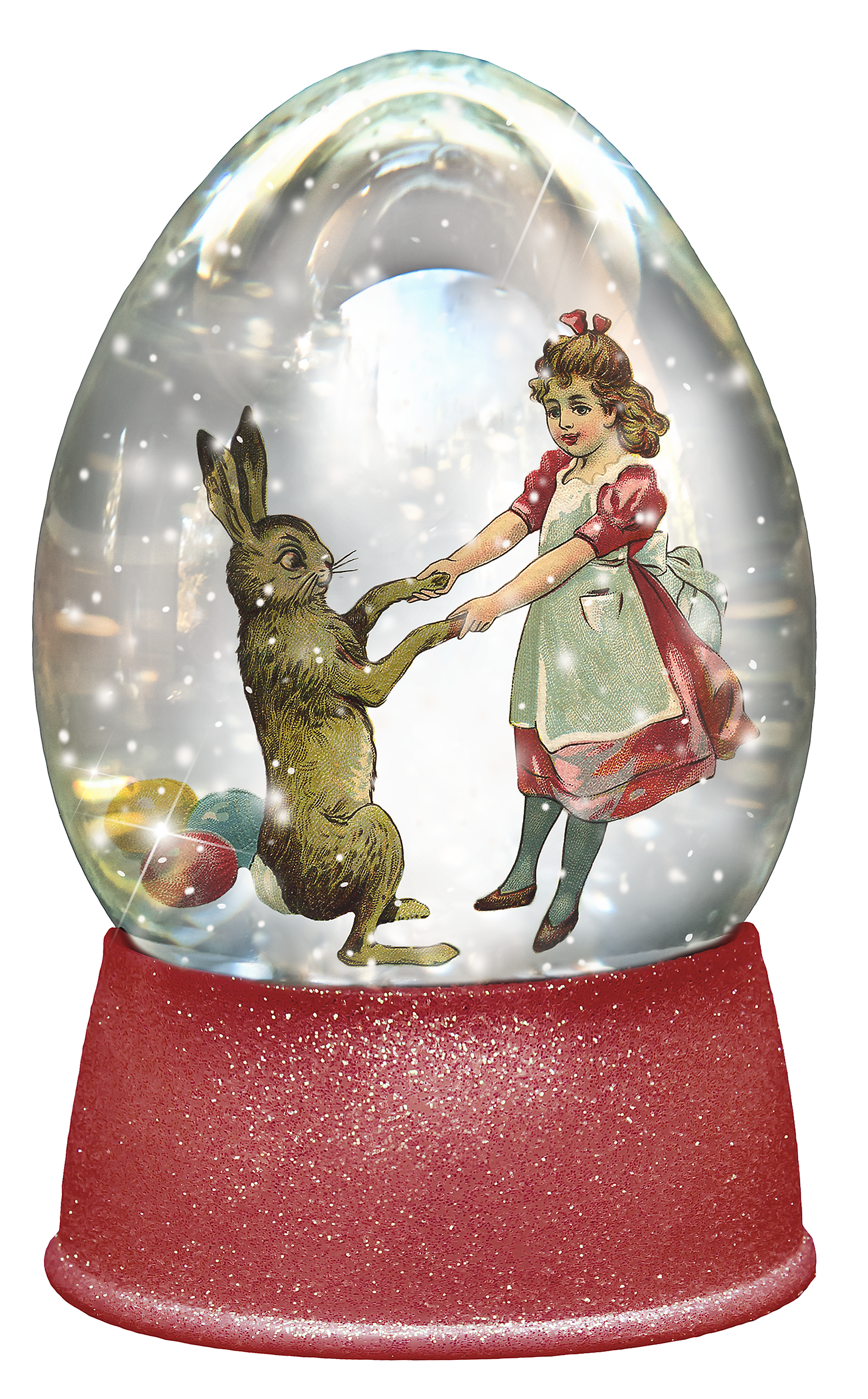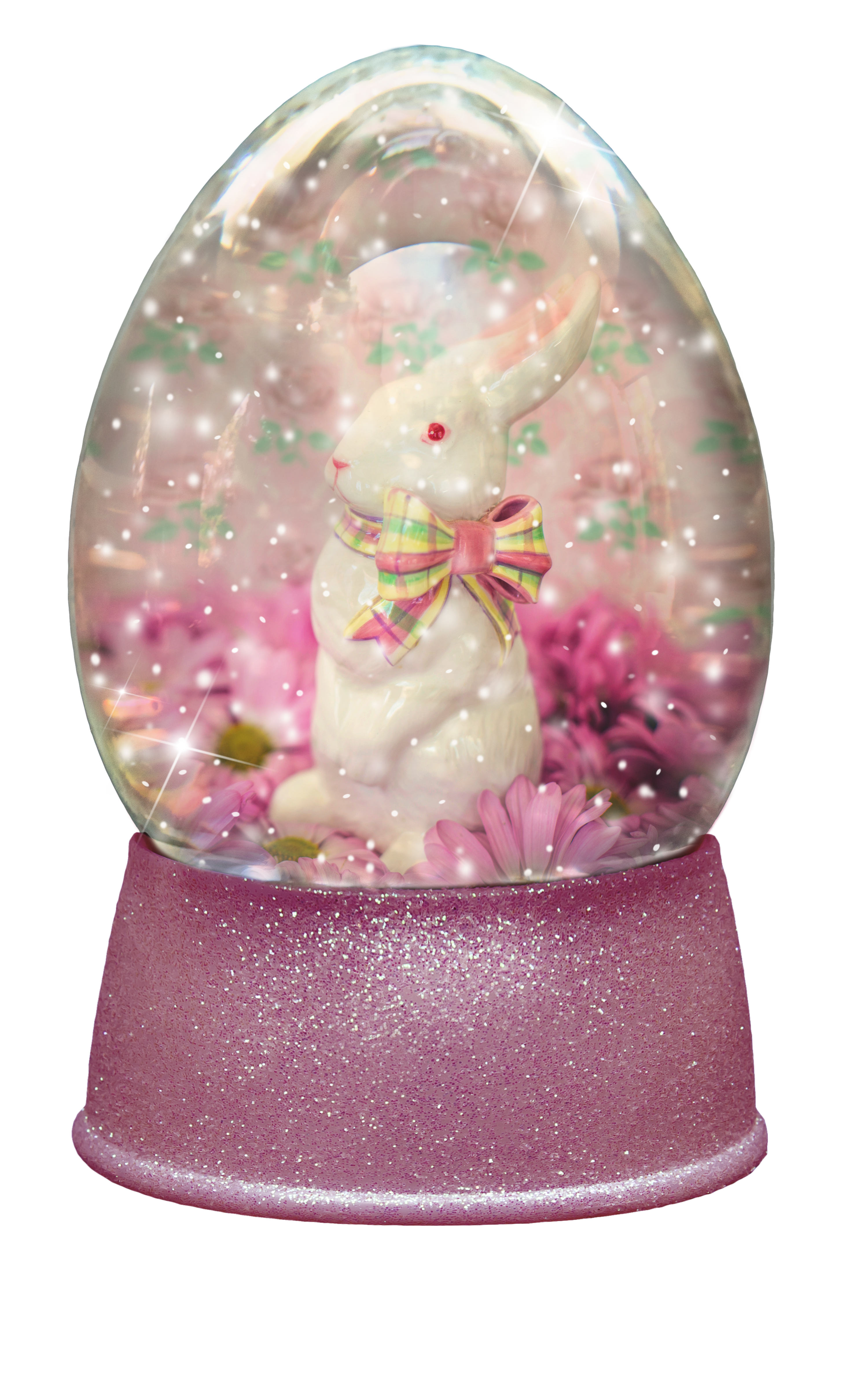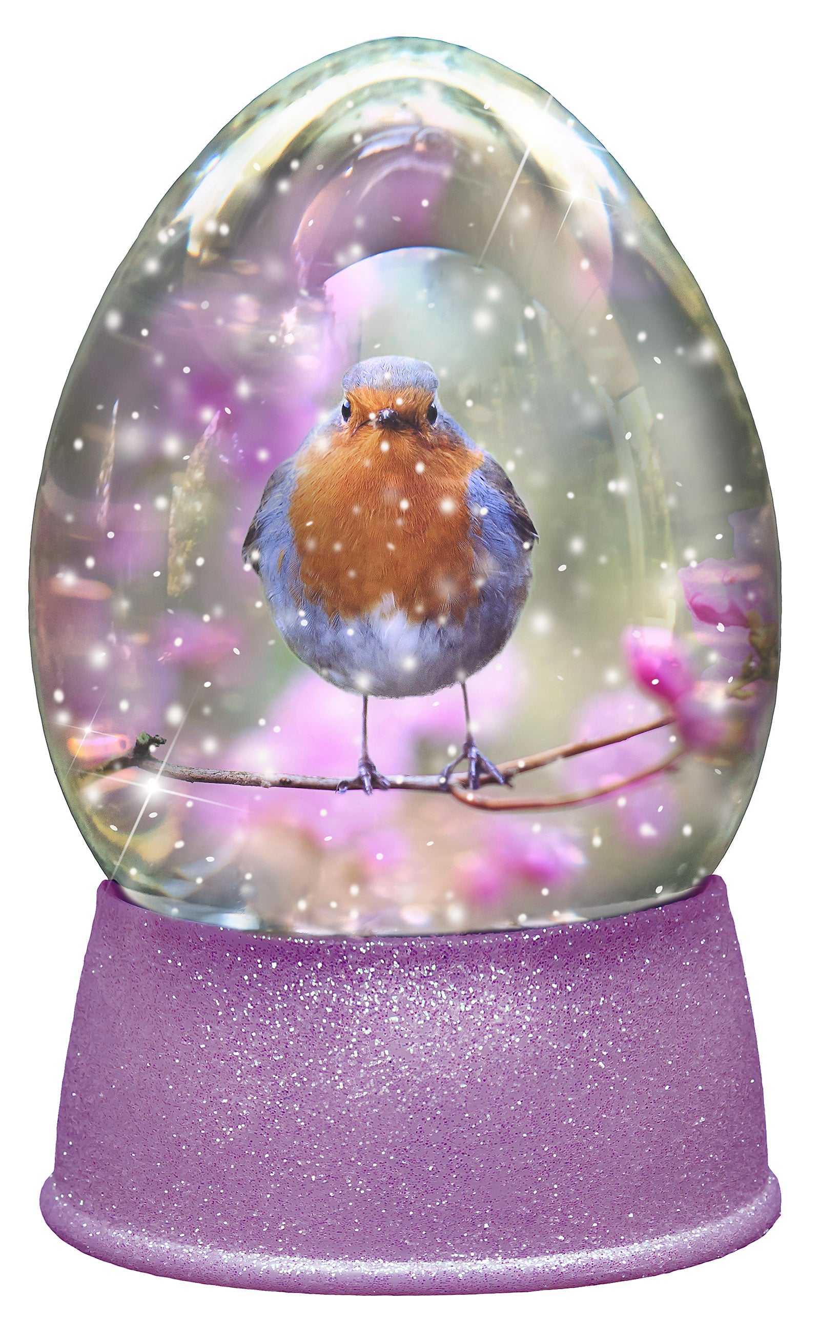 The globe is transparent, perfect for you to add your own images and retain the snow globe effect.