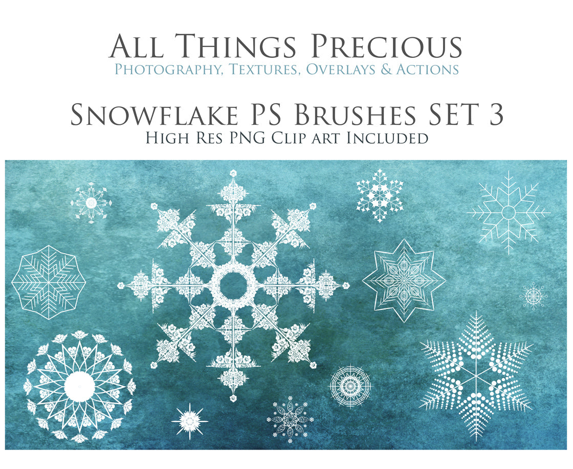Sweet and magical Snowflake brushes, with Png clipart! A gorgeous addition to your beautiful photography, scrapbooking or digital art work!