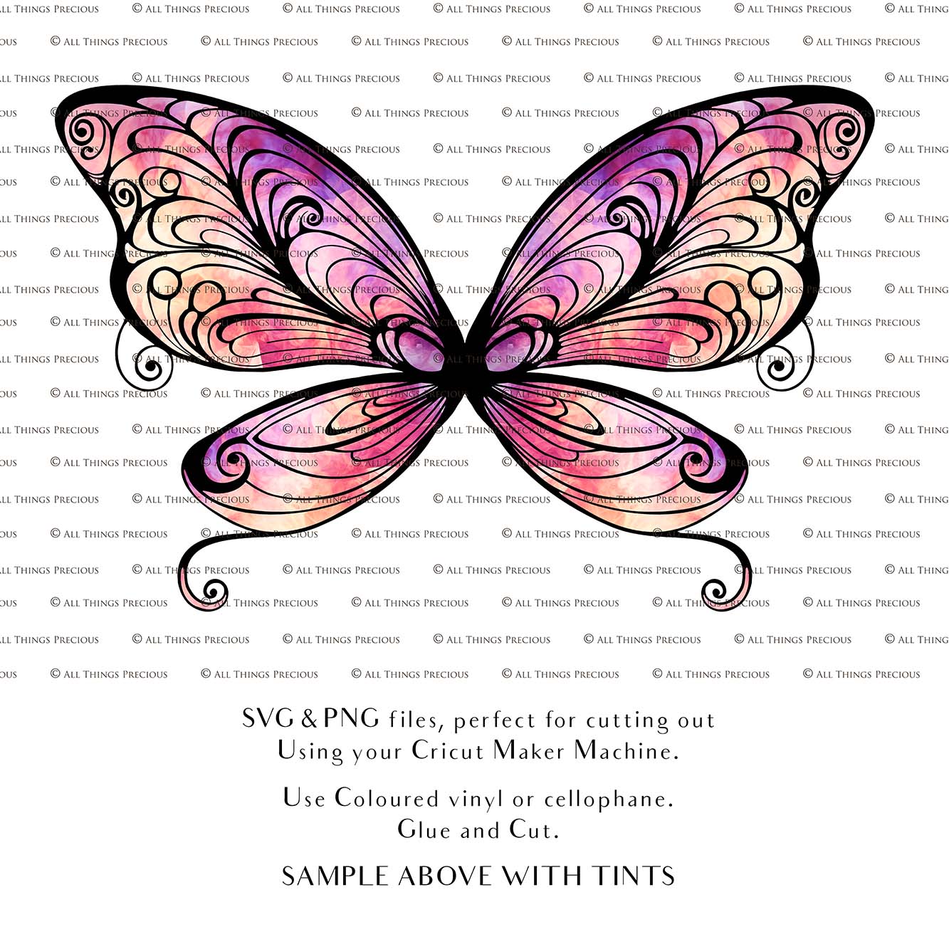SVG & PNG Fairy/Angel Wing files for Cricut, Silhouette Cameo and other Cutting Machines. Create wearable fairy wings, all sizes. Perfect for Halloween Costumes, Fantasy, Cosplay, Photography. Prints, Wedding, Engagement, Baby Shower invitations, Sublimation Printing, Clip Art and more. Cut and assemble. ATP Textures.