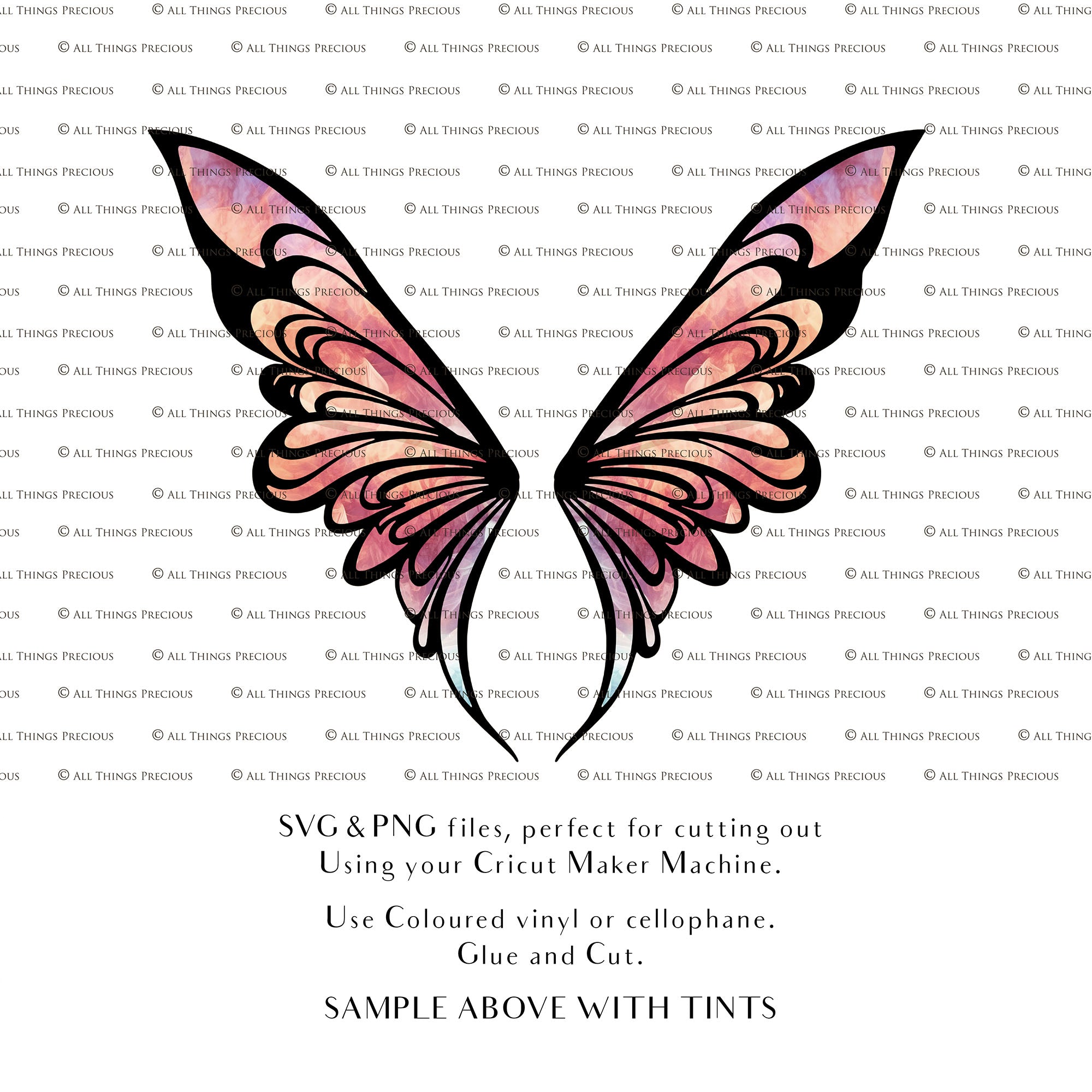 SVG & PNG Fairy/Angel Wing files for Cricut, Silhouette Cameo and other Cutting Machines. Create wearable fairy wings, all sizes. Perfect for Halloween Costumes, Fantasy, Cosplay, Photography. Prints, Wedding, Engagement, Baby Shower invitations, Sublimation Printing, Clip Art and more. Cut and assemble. ATP Textures.