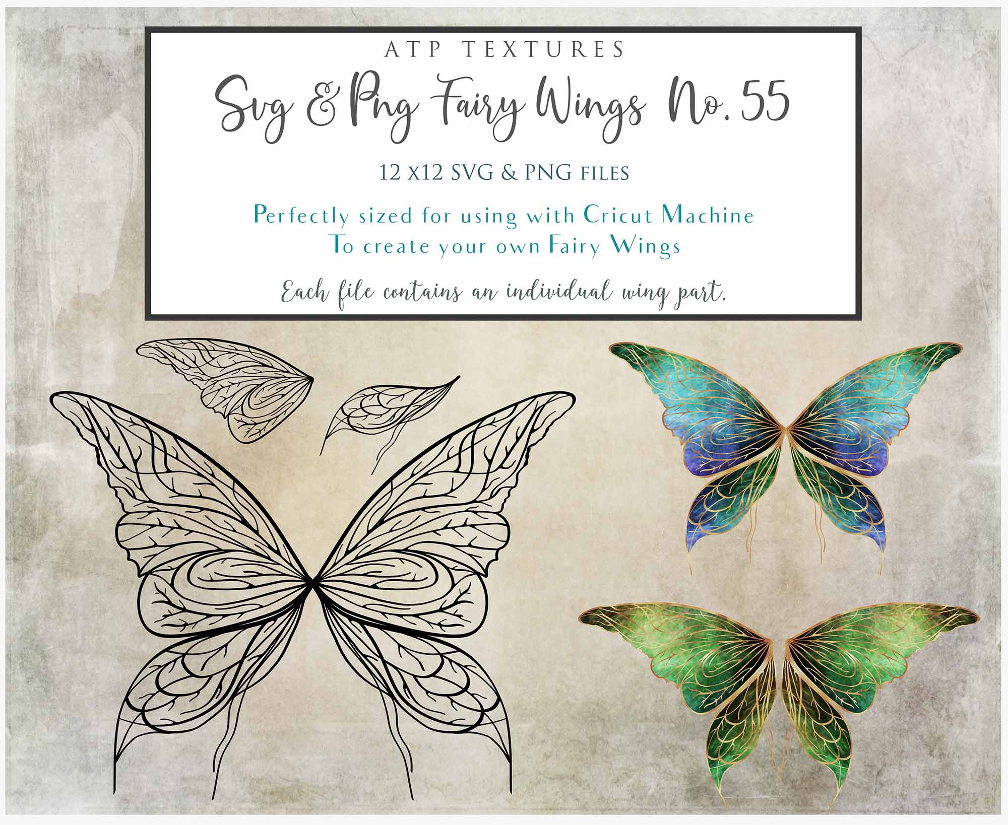 SVG & PNG Fairy/Angel Wing files for Cricut, Silhouette Cameo and other Cutting Machines. Create wearable fairy wings, all sizes. Perfect for Halloween Costumes, Fantasy, Cosplay, Photography. Prints, Wedding, Engagement, Baby Shower invitations, Sublimation Printing, Clip Art and more. Cut and assemble. ATP Textures.