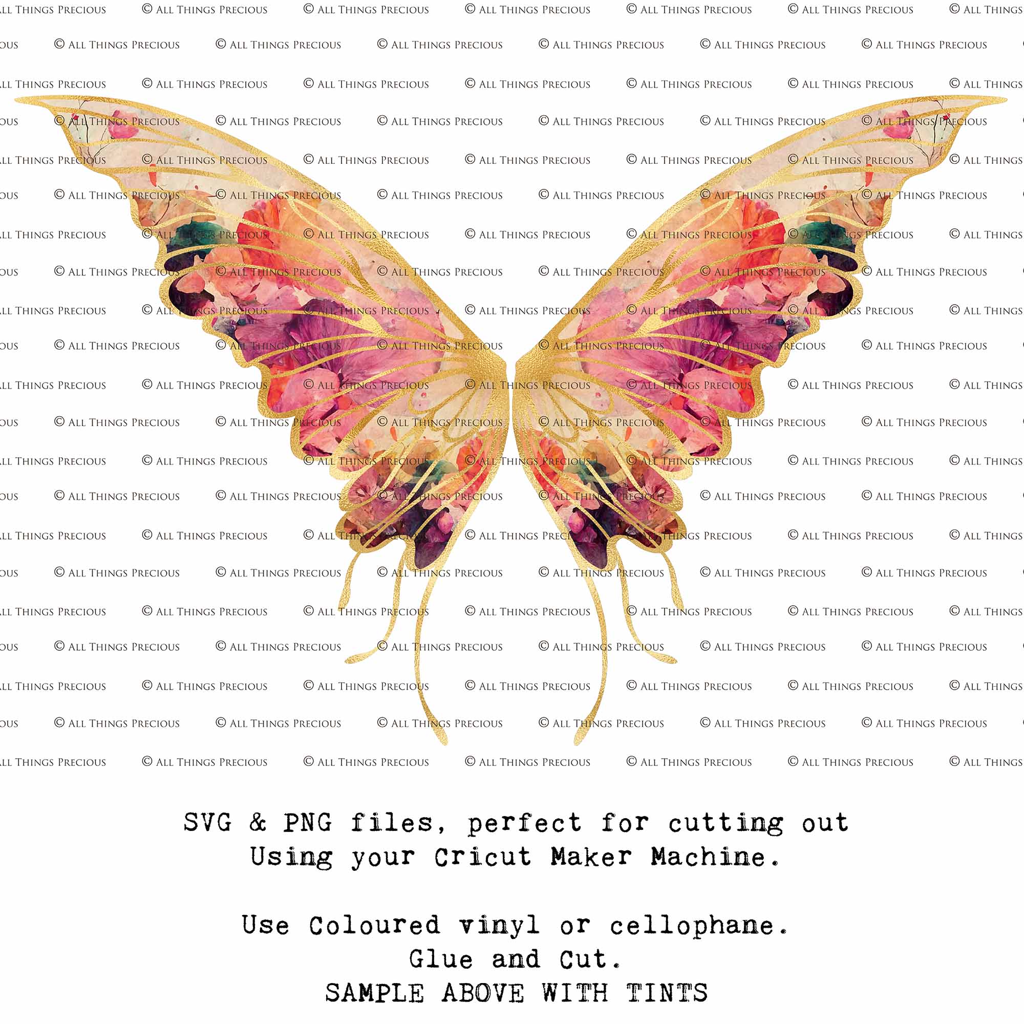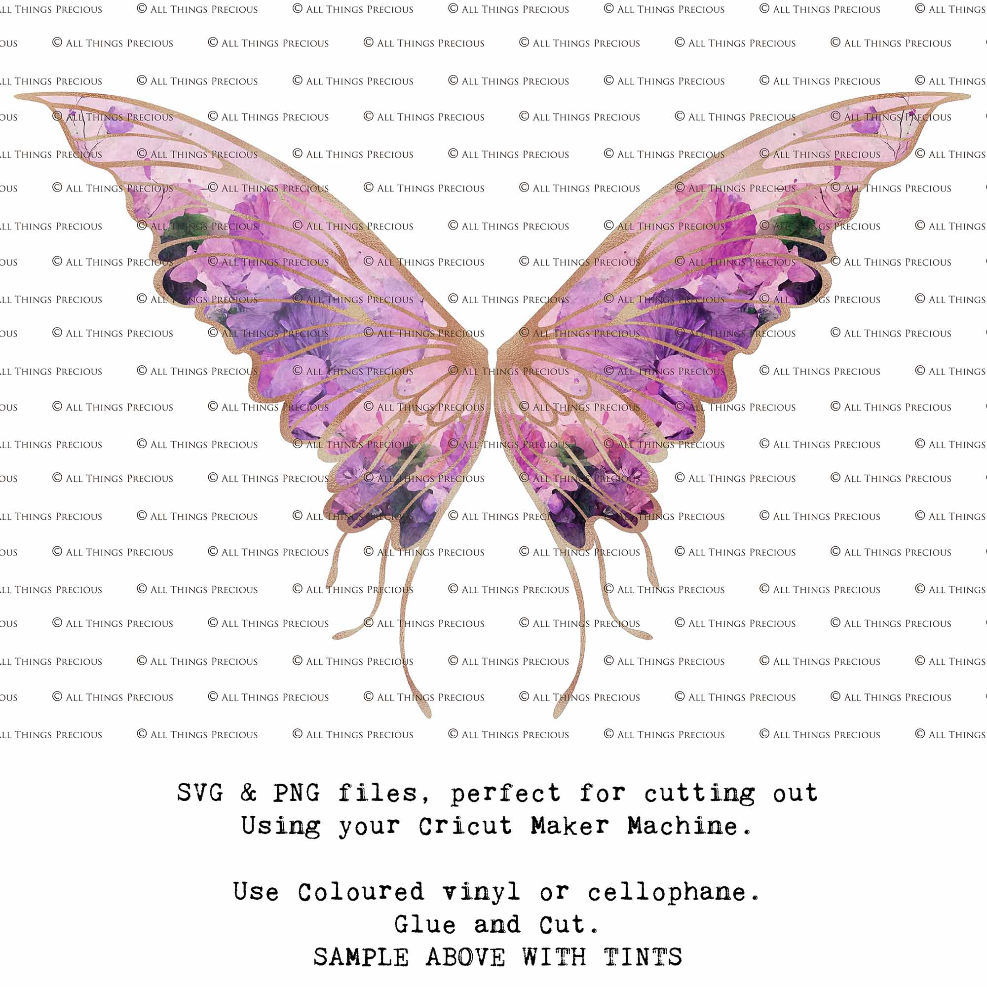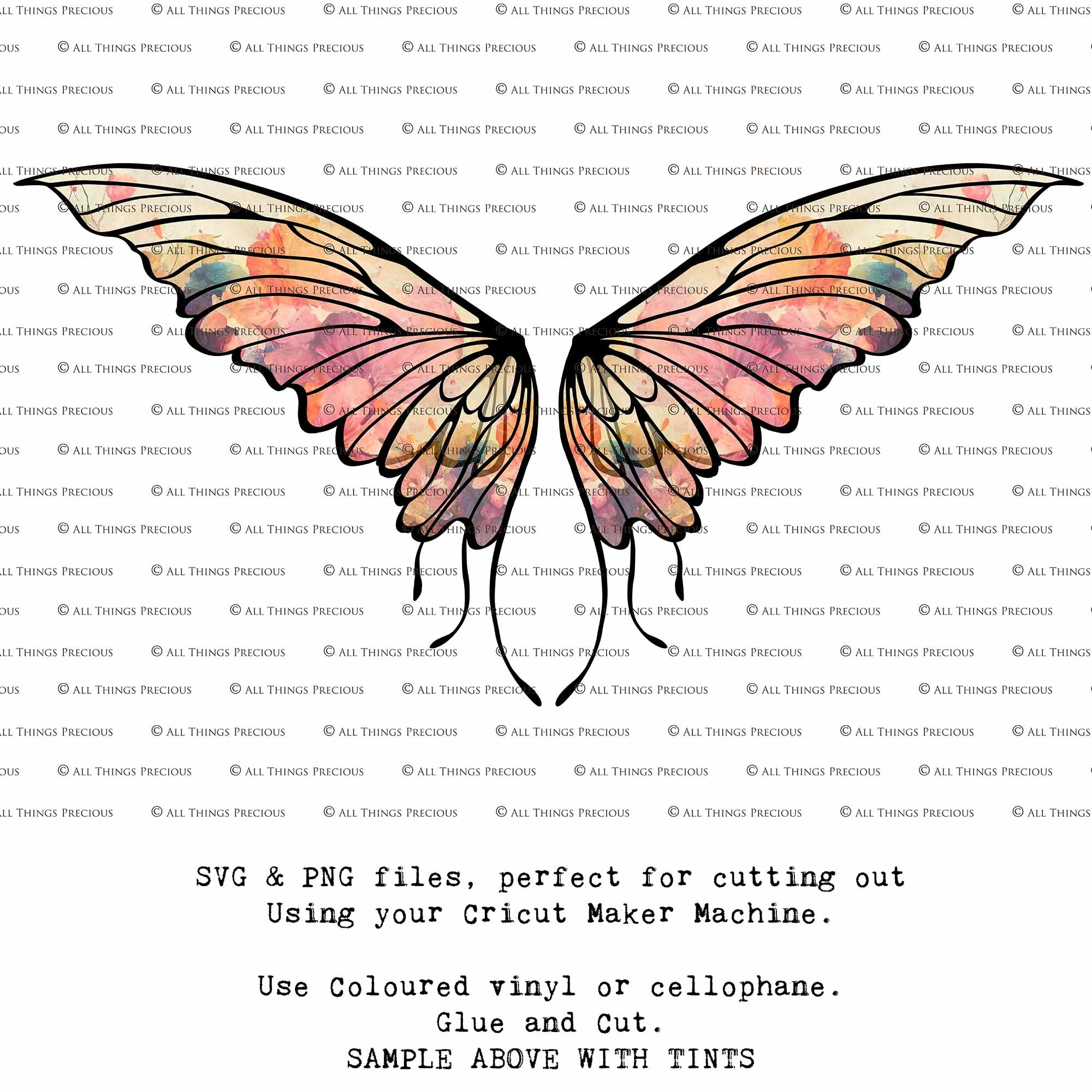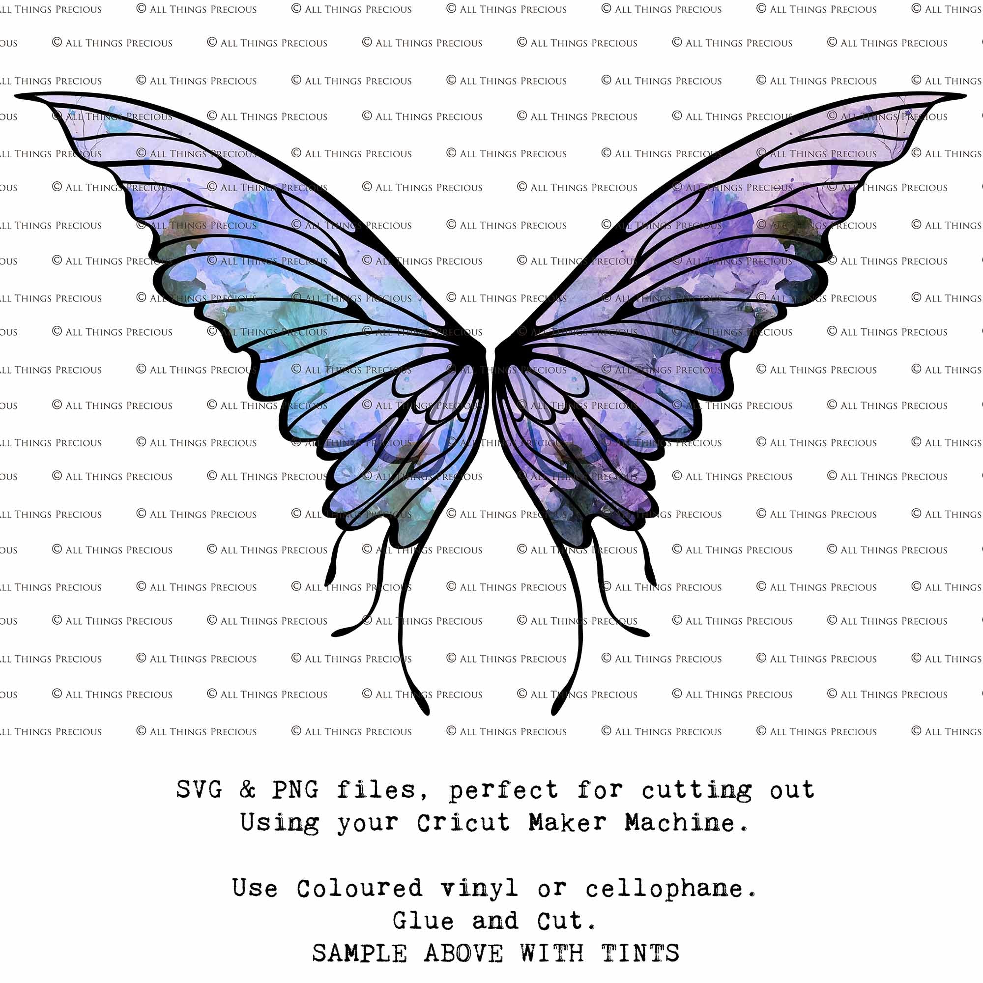 SVG & PNG Fairy/Angel Wing files for Cricut, Silhouette Cameo and other Cutting Machines. Create wearable fairy wings, all sizes. Perfect for Halloween Costumes, Fantasy, Cosplay, Photography. Prints, Wedding, Engagement, Baby Shower invitations, Sublimation Printing, Clip Art and more. Cut and assemble. ATP Textures.