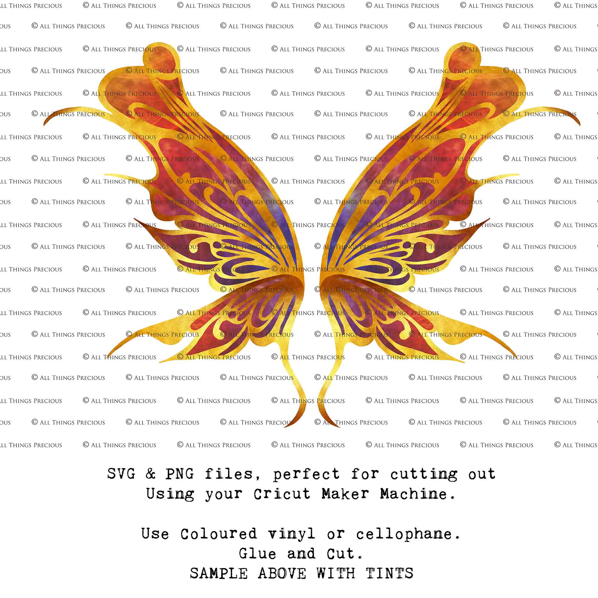 SVG & PNG Fairy/Angel Wing files for Cricut, Silhouette Cameo and other Cutting Machines. Create wearable fairy wings, all sizes. Perfect for Halloween Costumes, Fantasy, Cosplay, Photography. Prints, Wedding, Engagement, Baby Shower invitations, Sublimation Printing, Clip Art and more. Cut and assemble. ATP Textures.