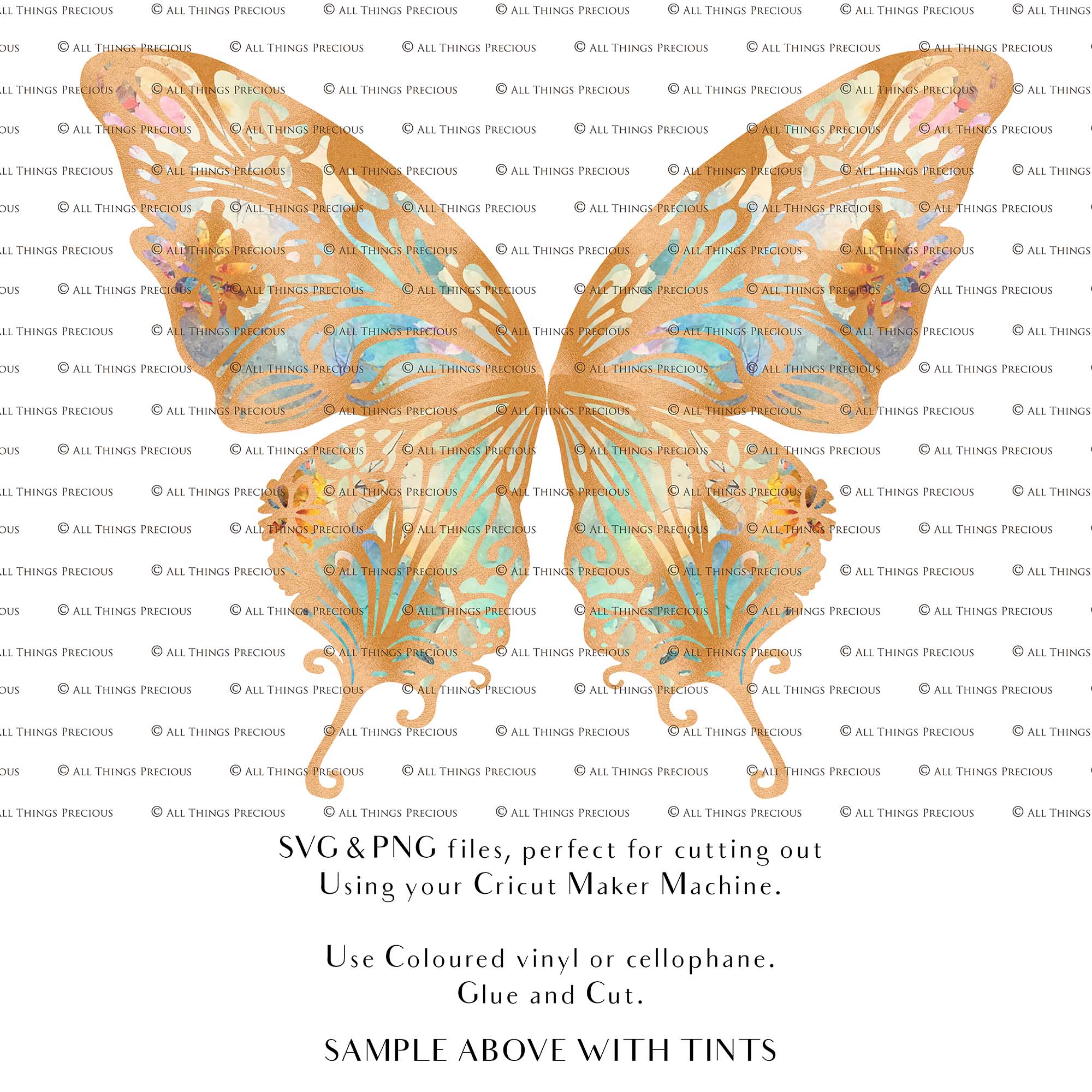 SVG & PNG Fairy/Angel Wing files for Cricut, Silhouette Cameo and other Cutting Machines. Create wearable fairy wings, all sizes. Perfect for Halloween Costumes, Fantasy, Cosplay, Photography. Prints, Wedding, Engagement, Baby Shower invitations, Sublimation Printing, Clip Art and more. Cut and assemble. ATP Textures.