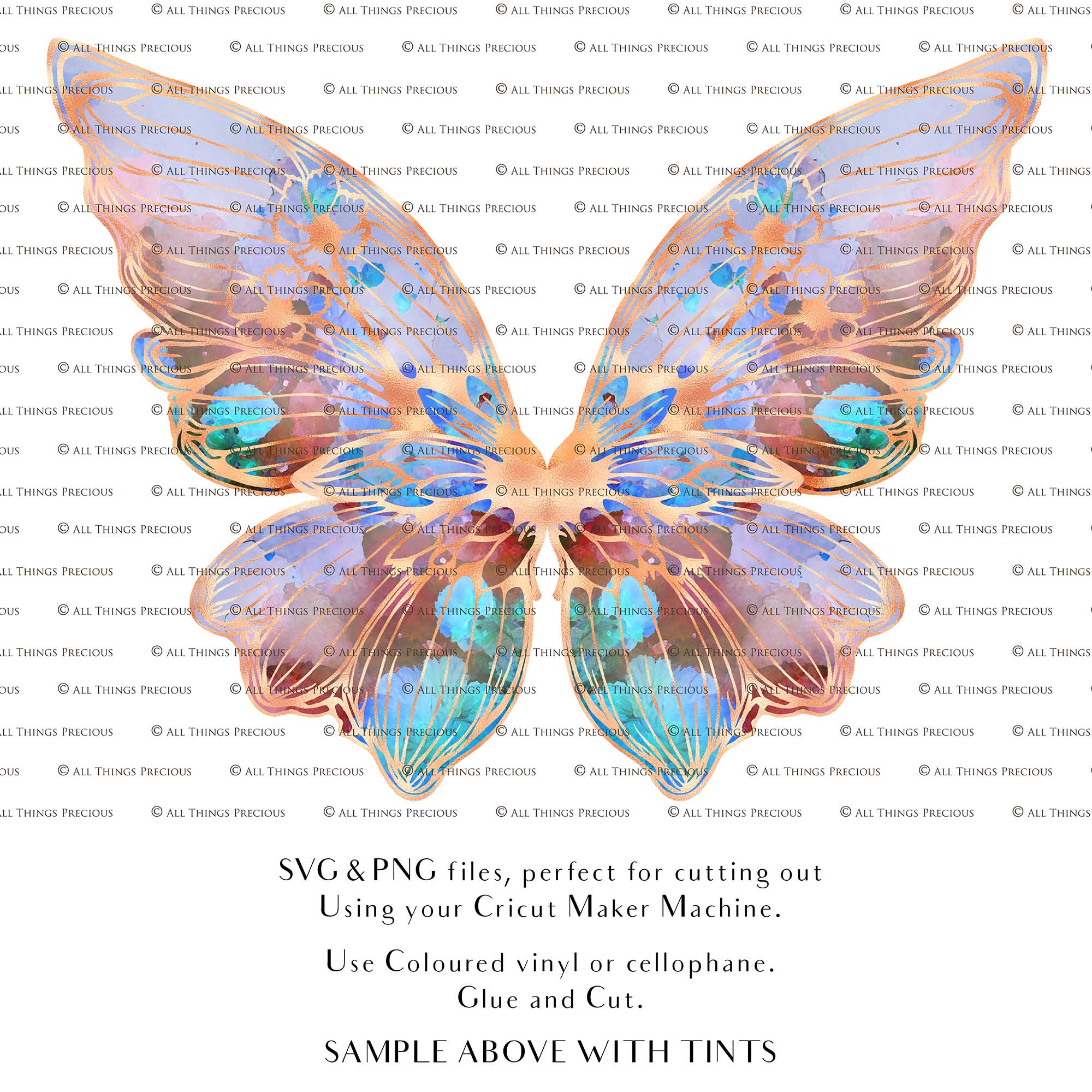 SVG & PNG files for use with your cutting machine, to create wearable fairy wings, in adult or children sizes.