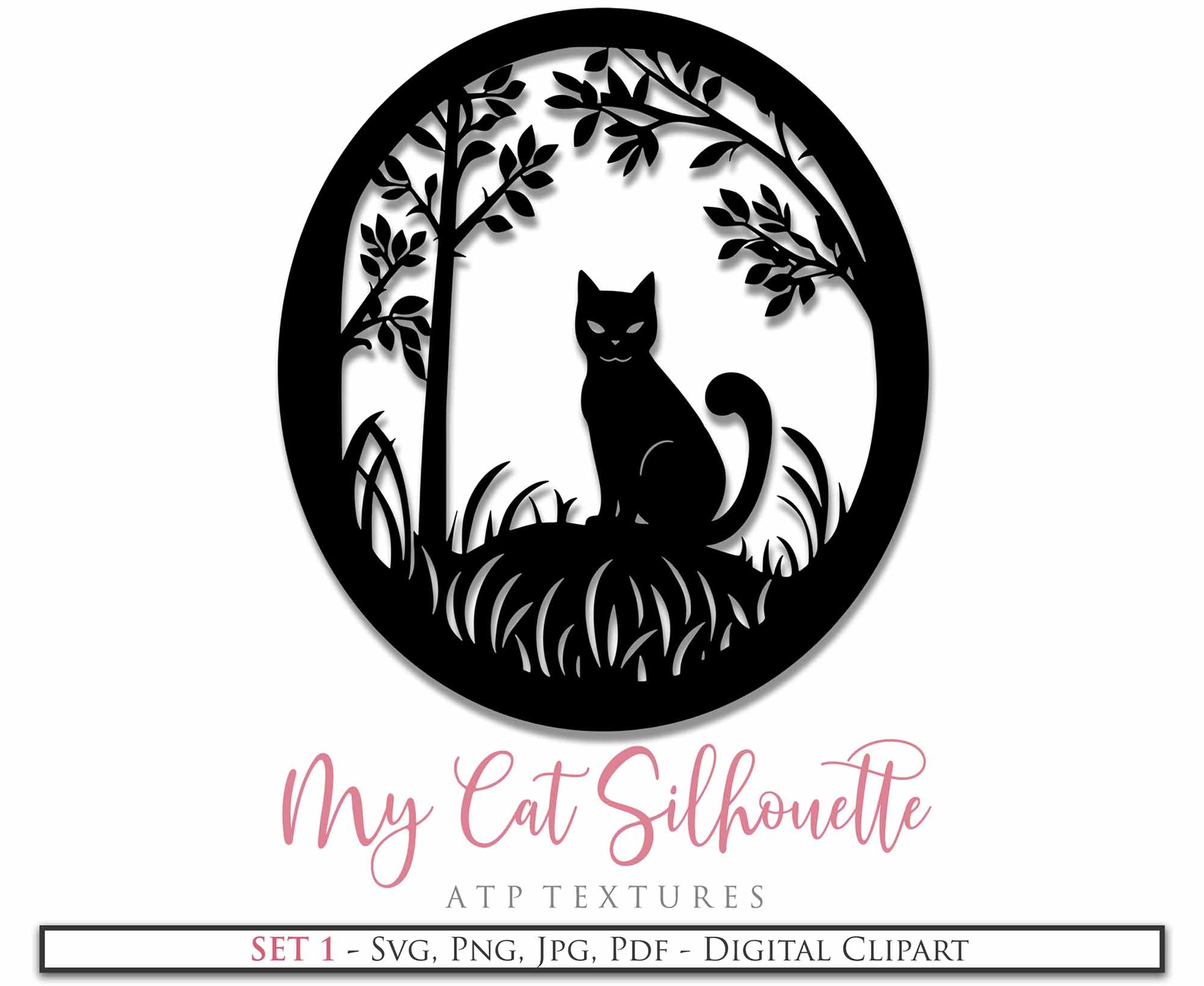 SVG / PNG CAT CIRCLE Silhouette - Clipart - Set 1