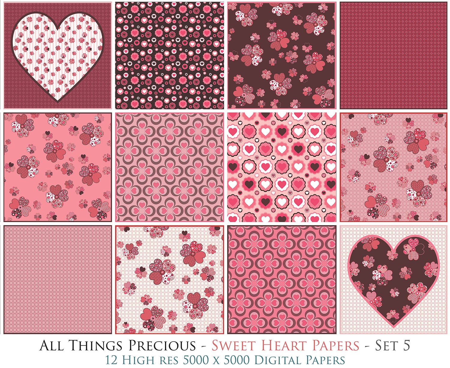 12 Sweet Heart digital scrapbooking Papers.