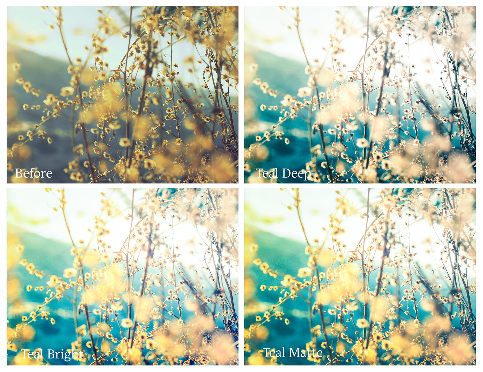 These are a lovely set of 6 Teal Blue presets for Lightroom Mobile, and Desktop Lightroom Classic.