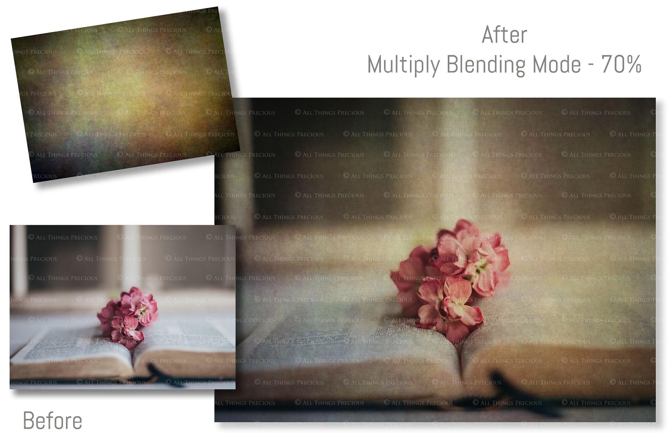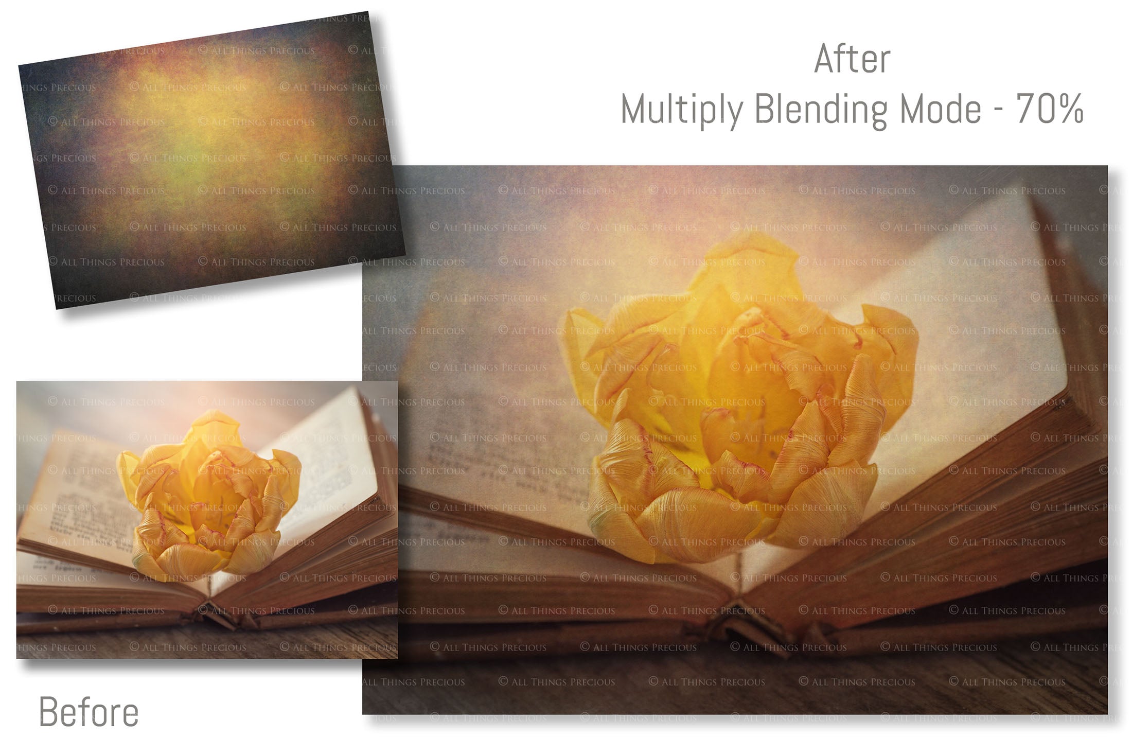 These textures are licensed for one business/photographer/studio only and must not be copied, shared, re packaged for sale or transmitted in any other form, physical or digital, without prior consent from all things precious photography.
