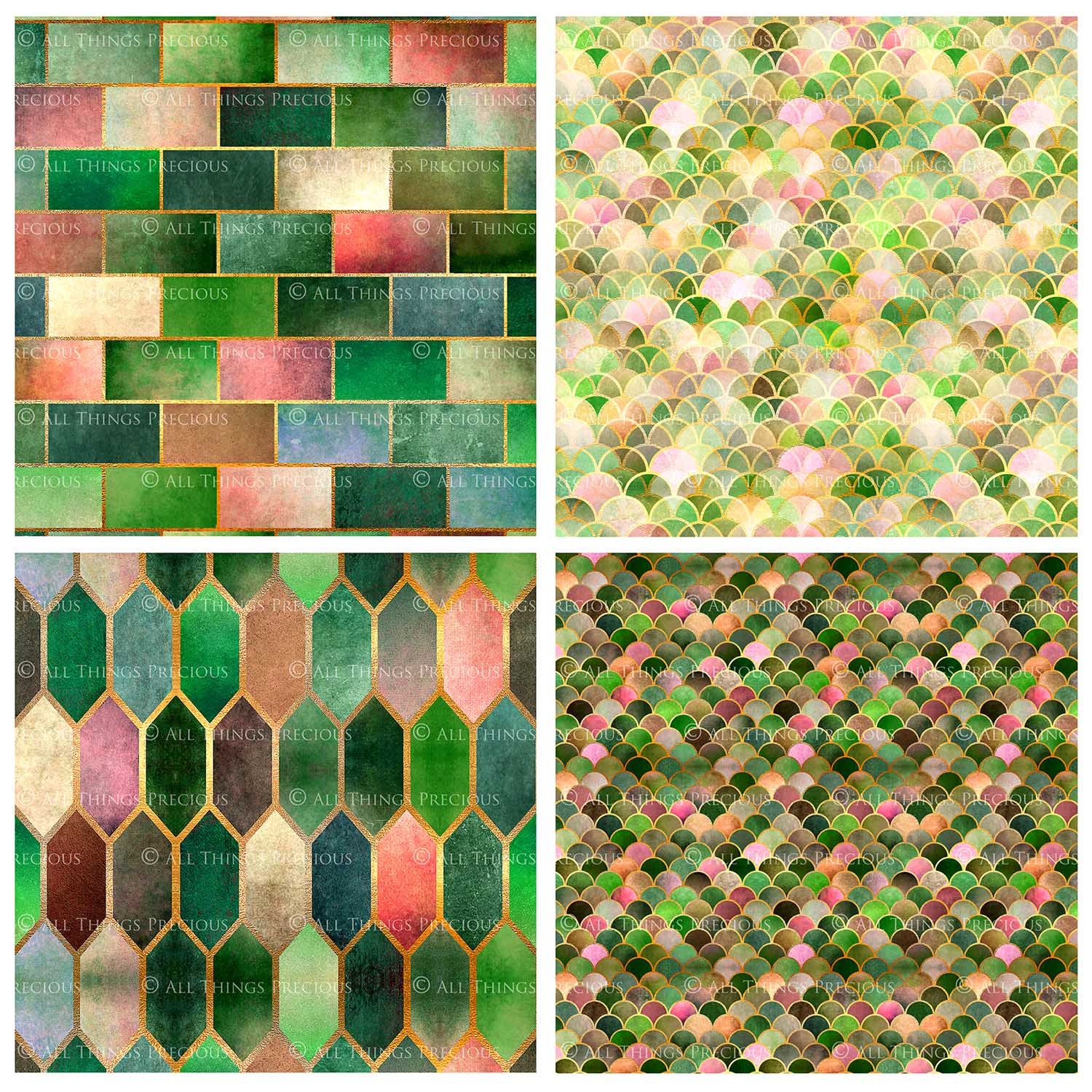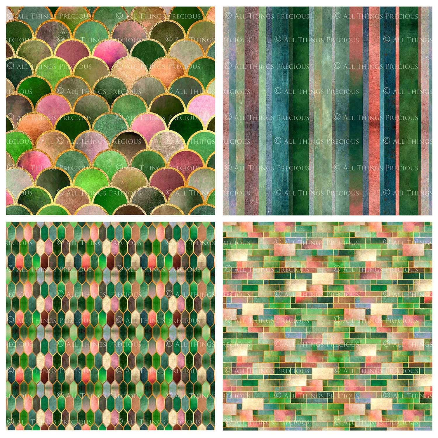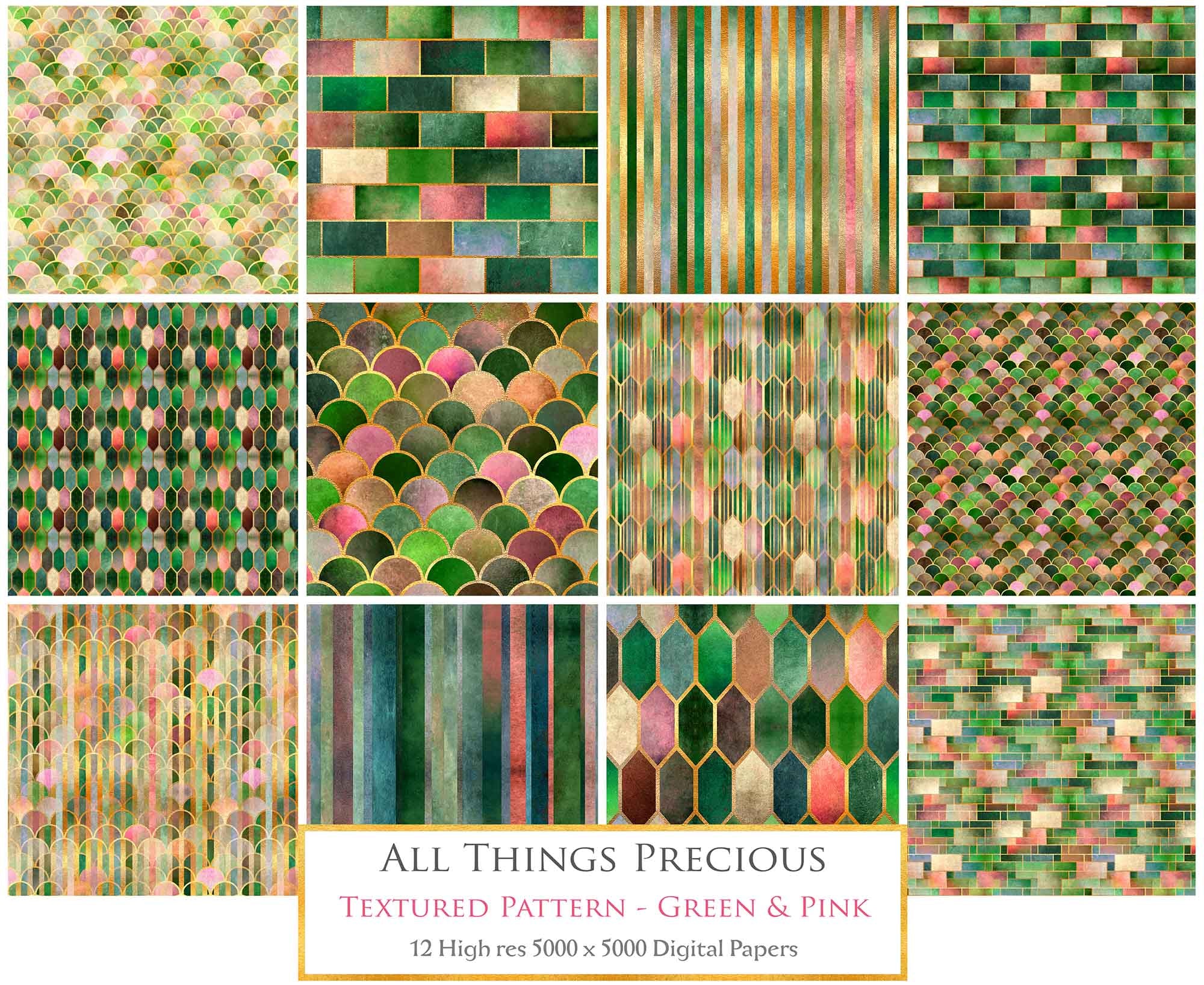 TEXTURED PATTERN - Gold, Green & Pink - Digital Papers