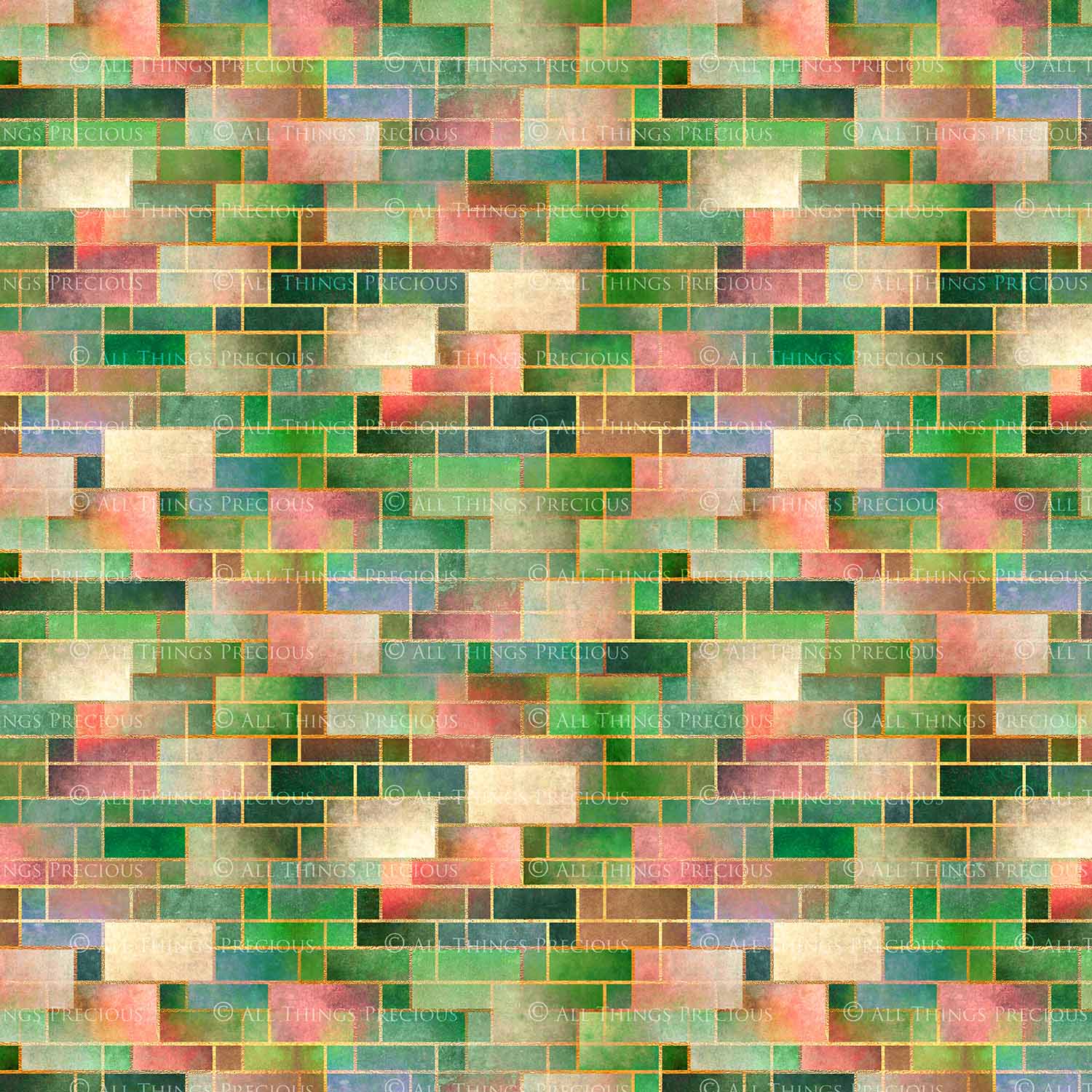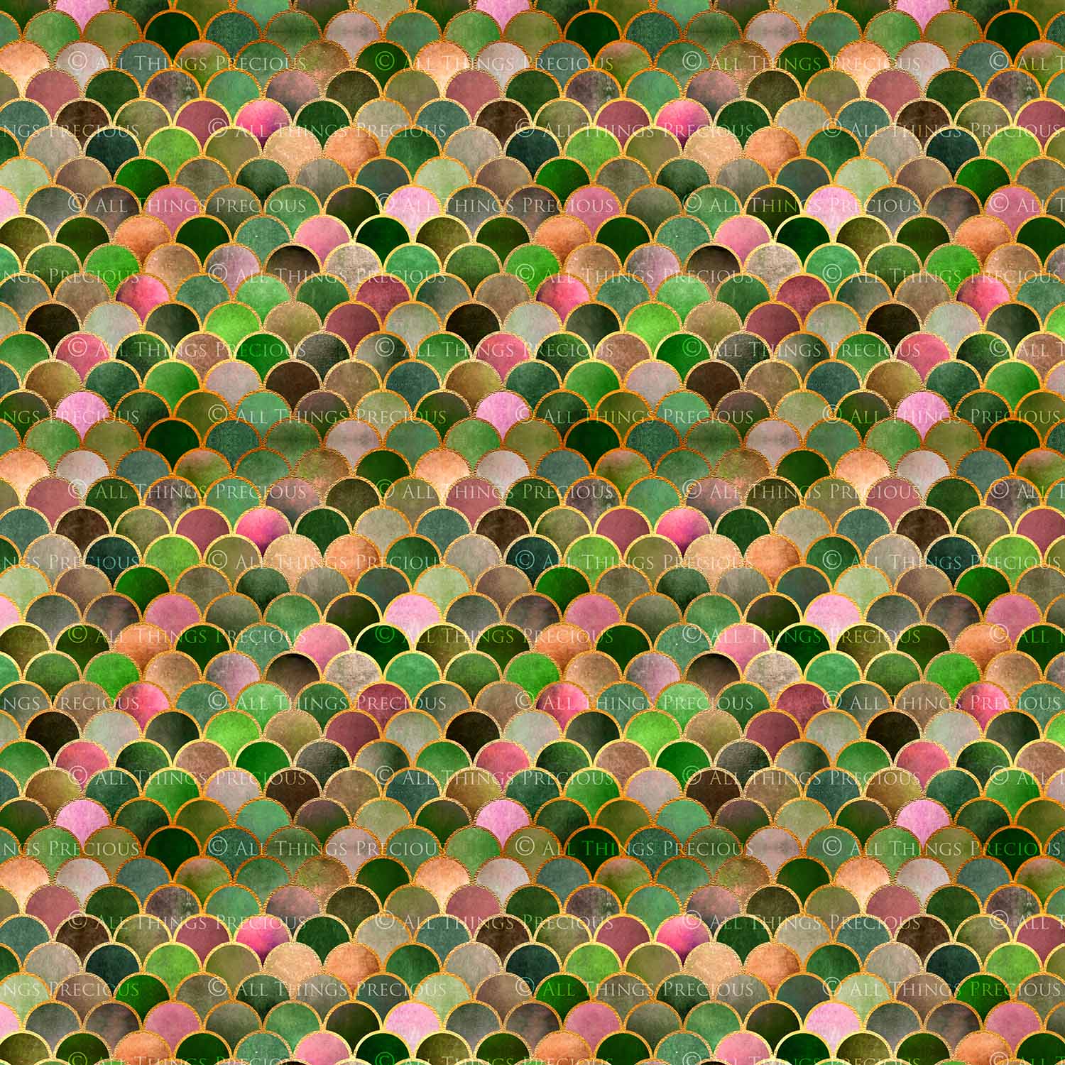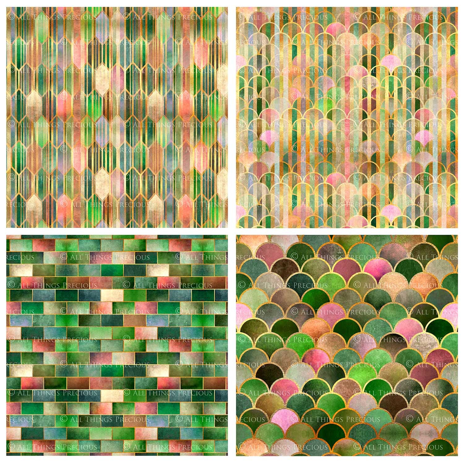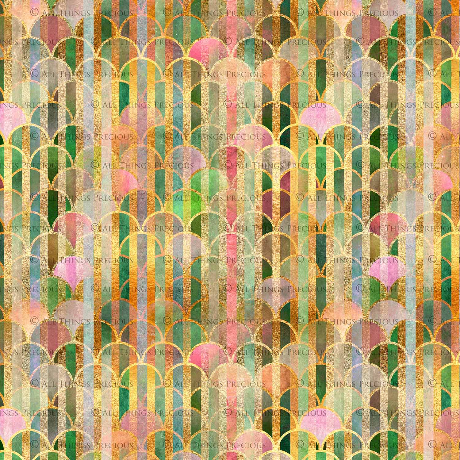 TEXTURED PATTERN - Gold, Green & Pink - Digital Papers