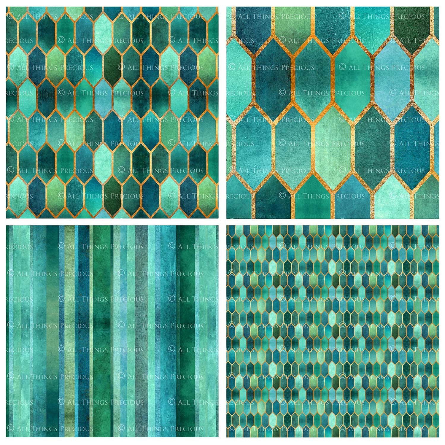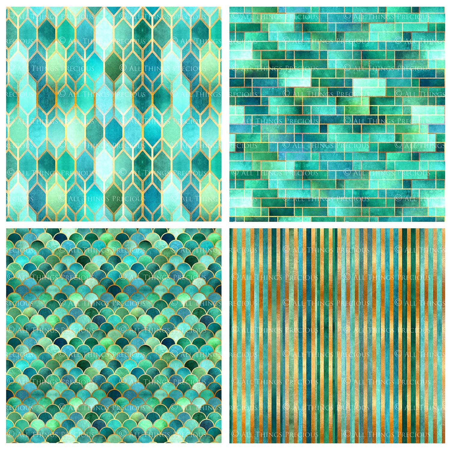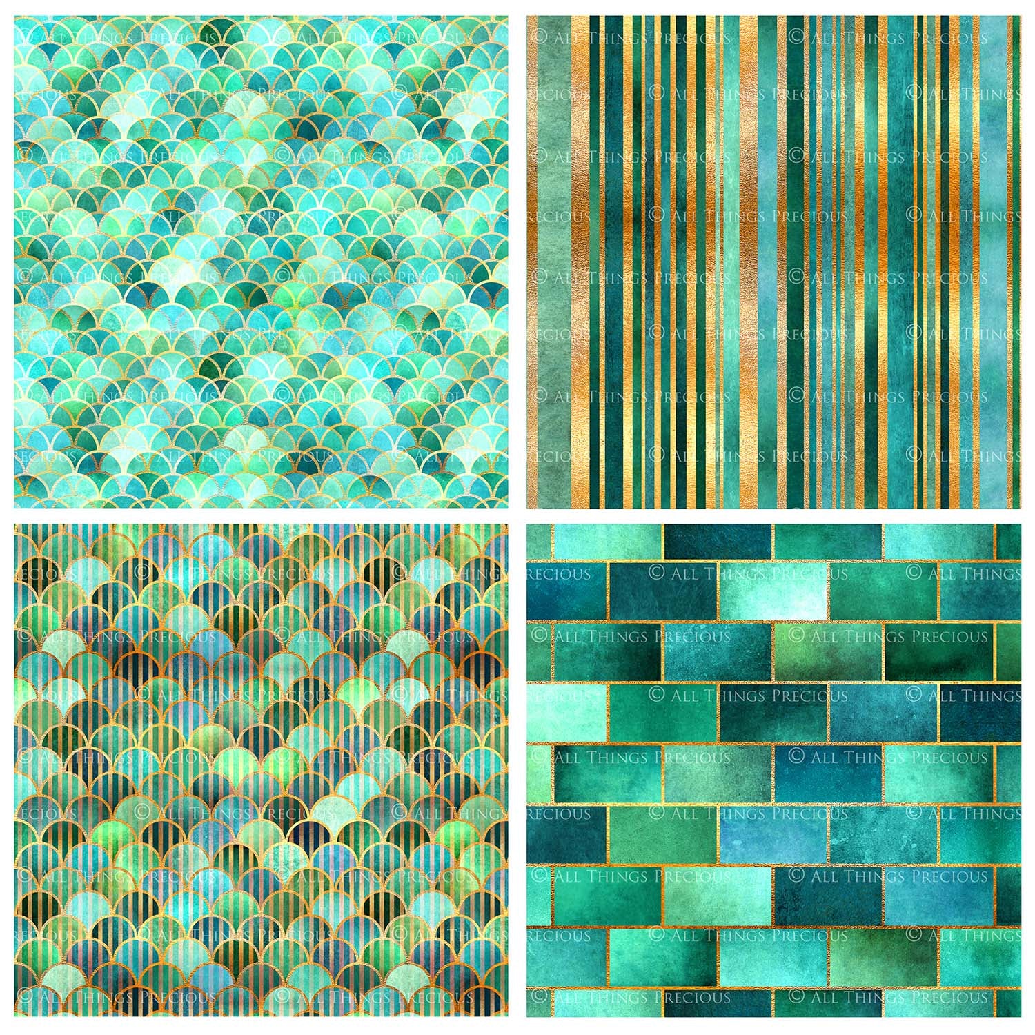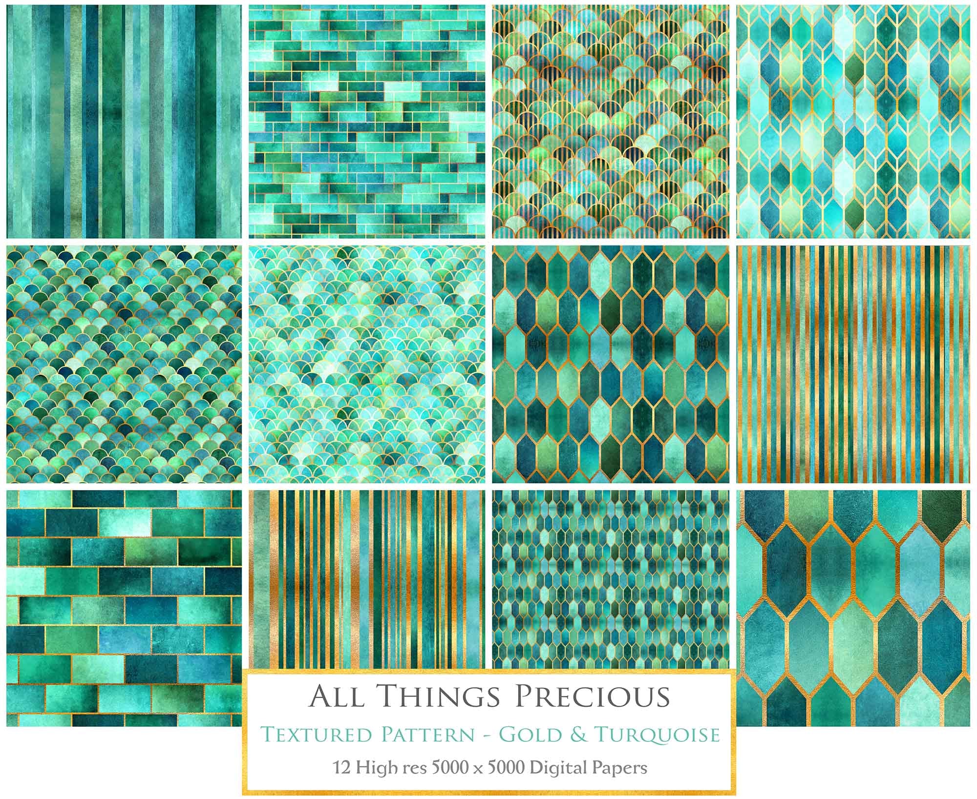 TEXTURED PATTERN Gold & Turquoise - Digital Papers