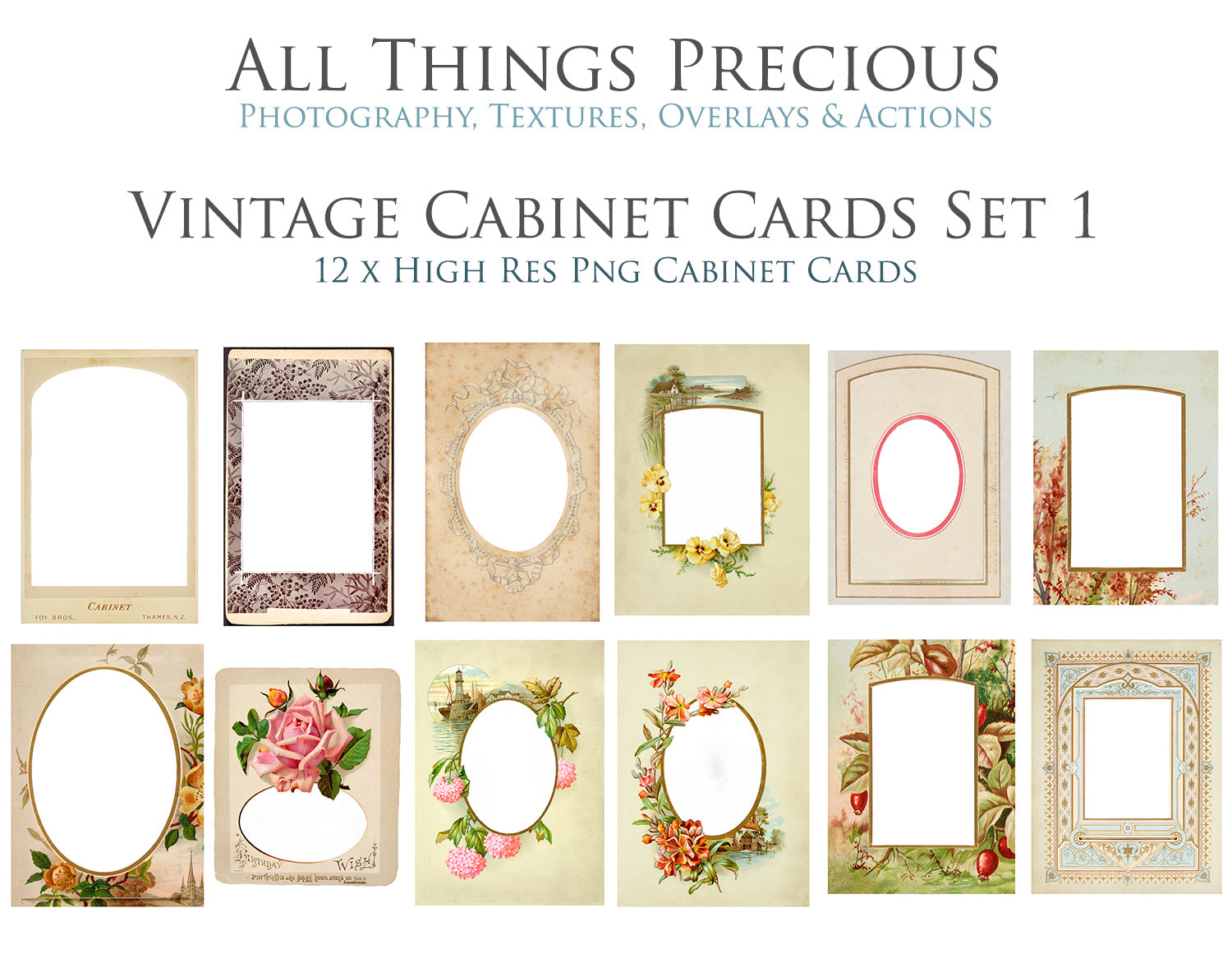 12 Gorgeous vintage cabinet cards, digitally restored and available in individual Png Files.