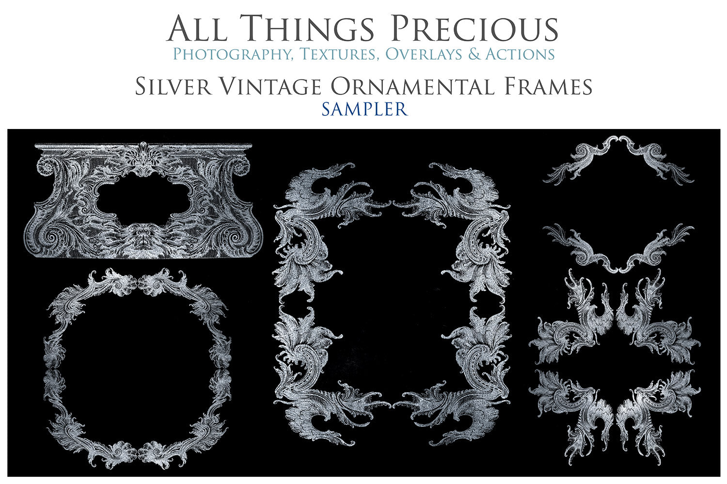 25 Gorgeous vintage Ornamental Silver Frames available in individual Png Files.