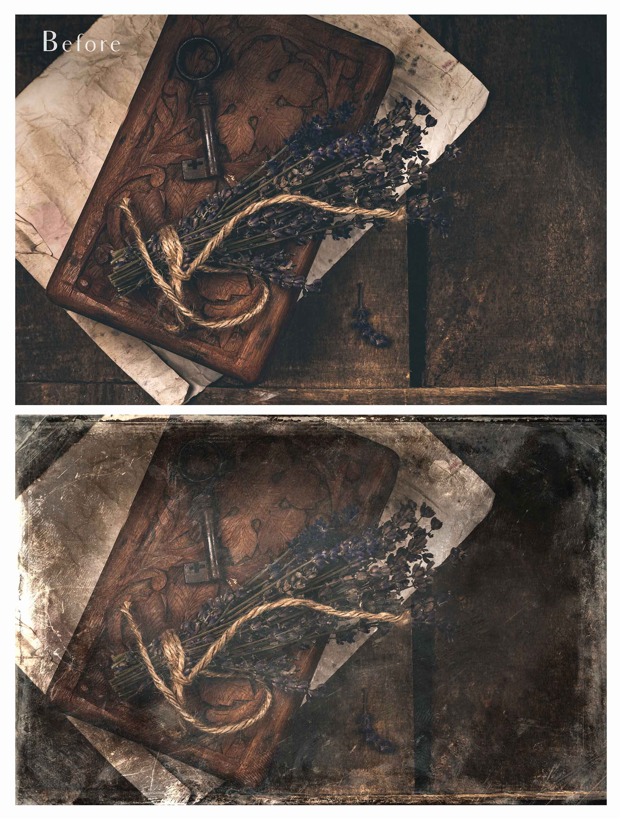 + You can incorporate the overlays for sale in your photography as a textured overlay, in a flattened state, without a commercial licence. You will need to add a link to ATP Textures with your listing when selling your work on the internet, eg. Etsy. If you are a professional photographer supplying a finished, printed photograph to clients, you DO NOT have to credit ATP Textures.