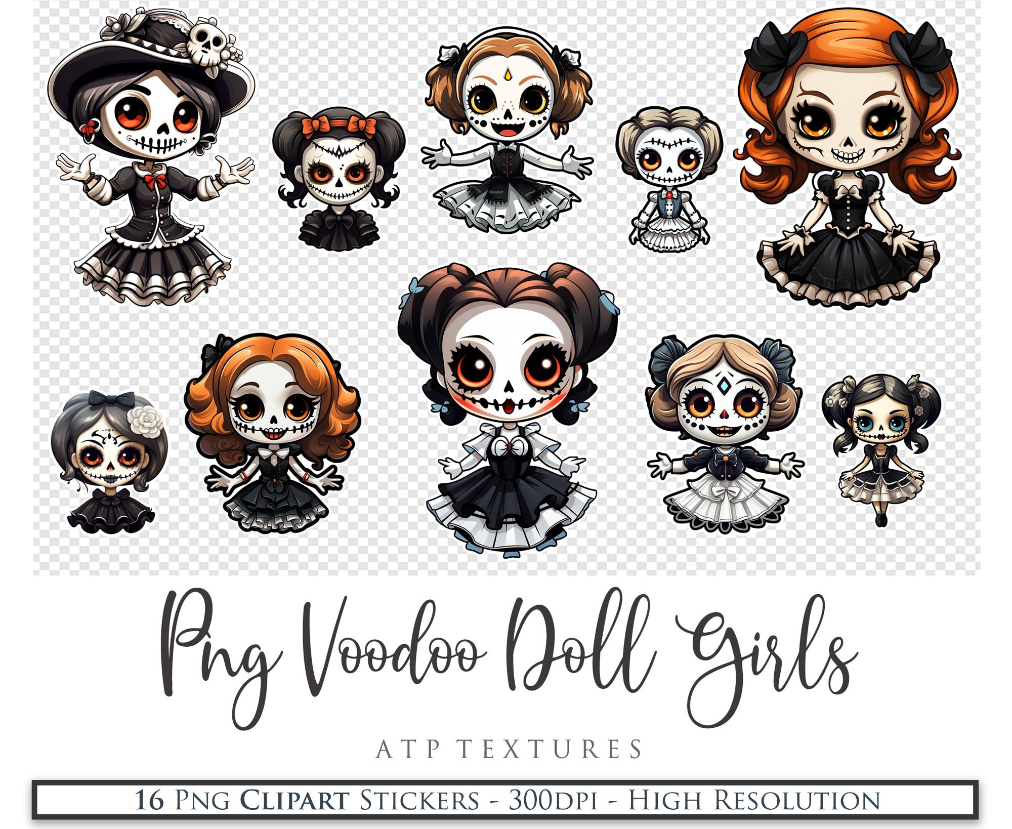 16 Png AI Voodoo Doll Girl Clipart Files.