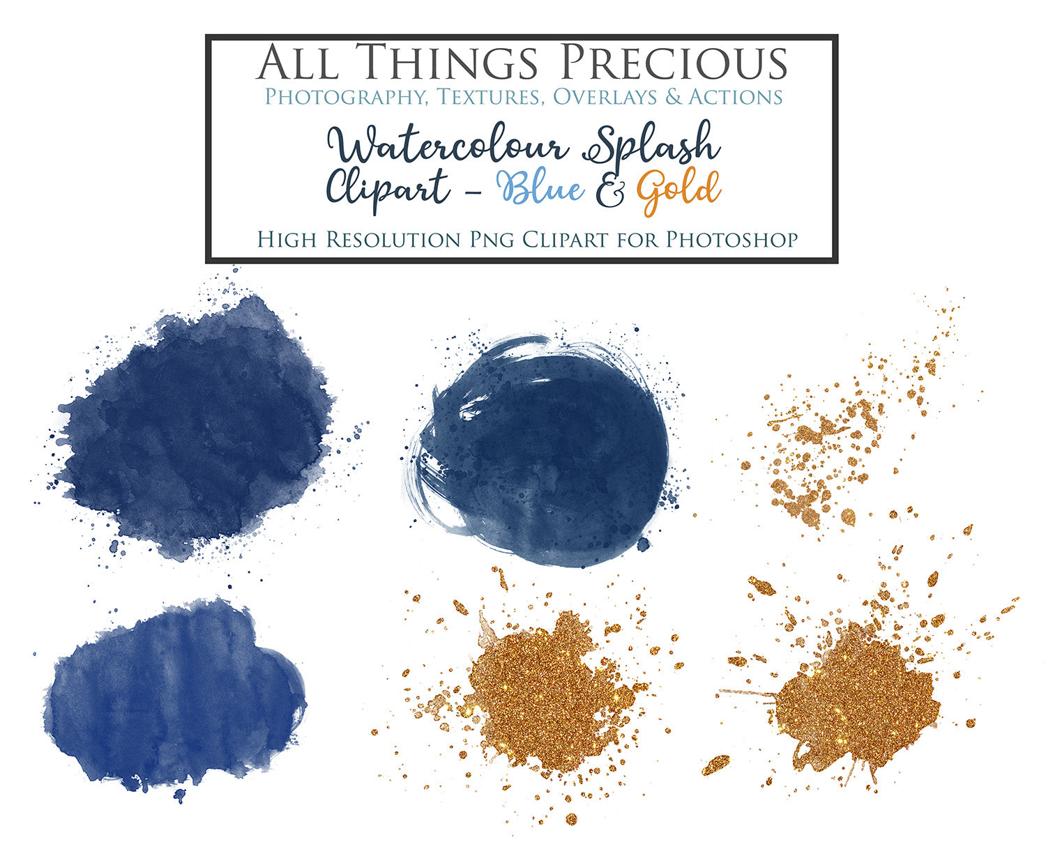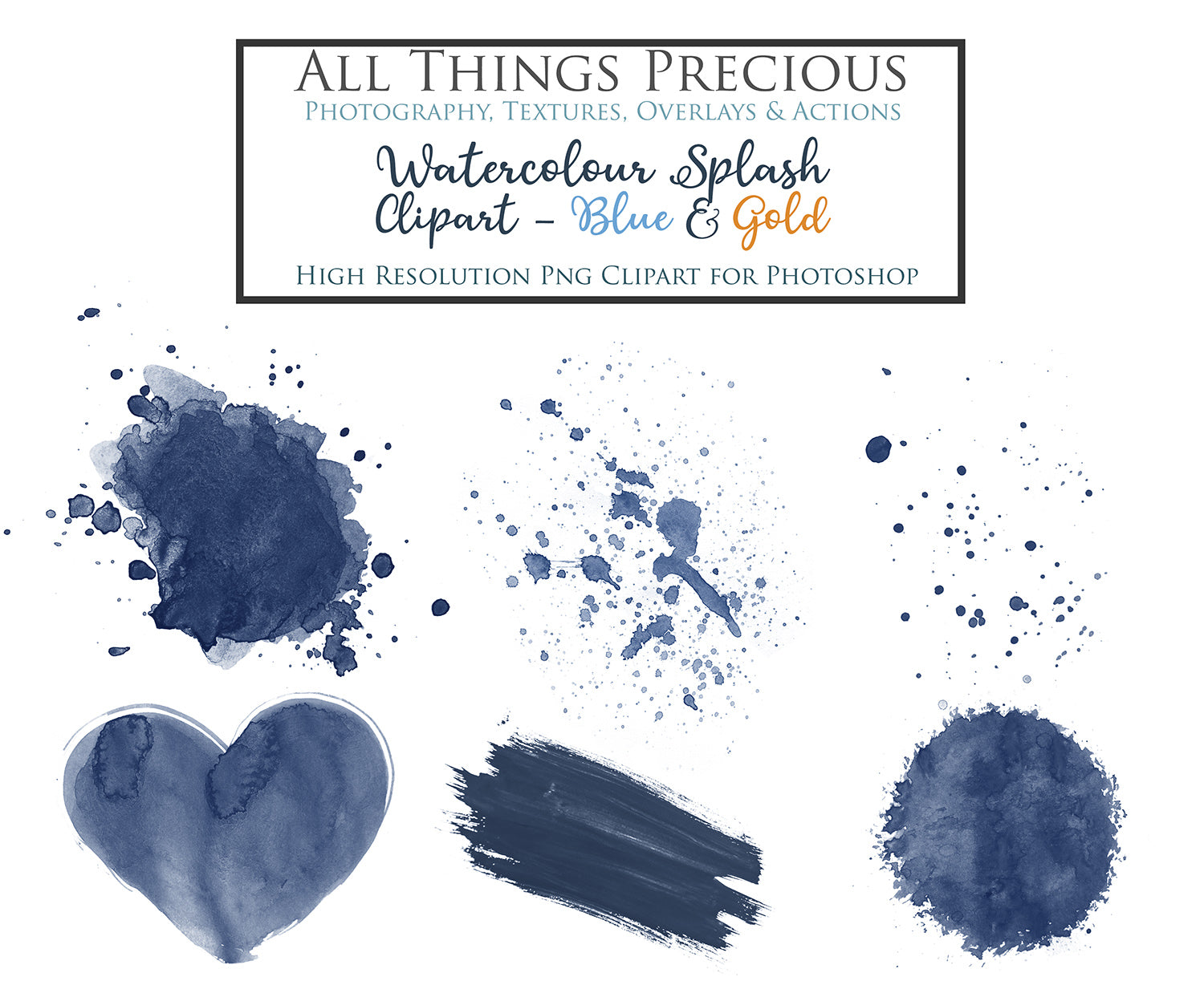 19 Watercolour Splashes, Hearts and Brush Strokes.