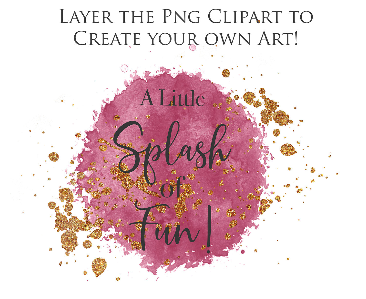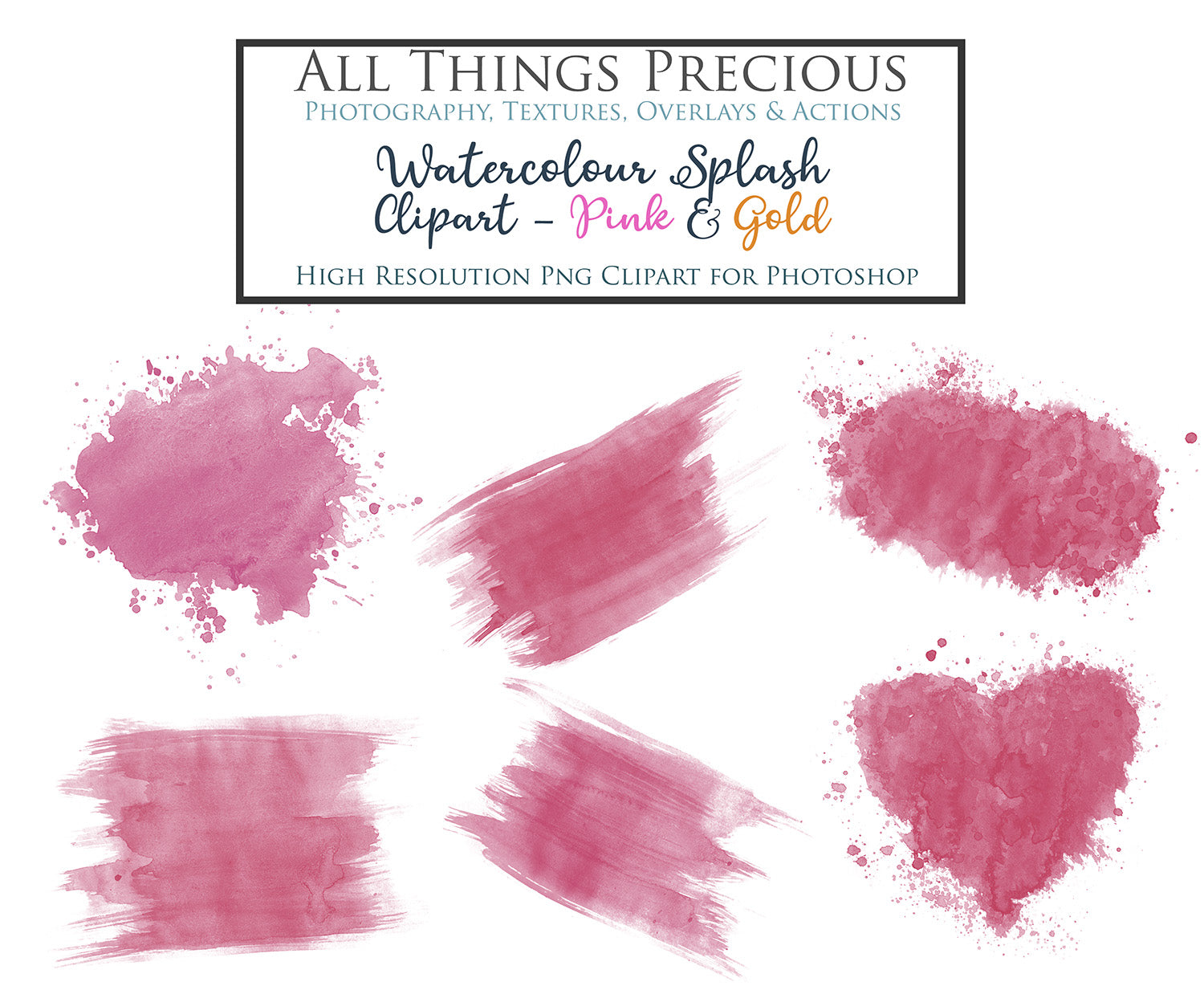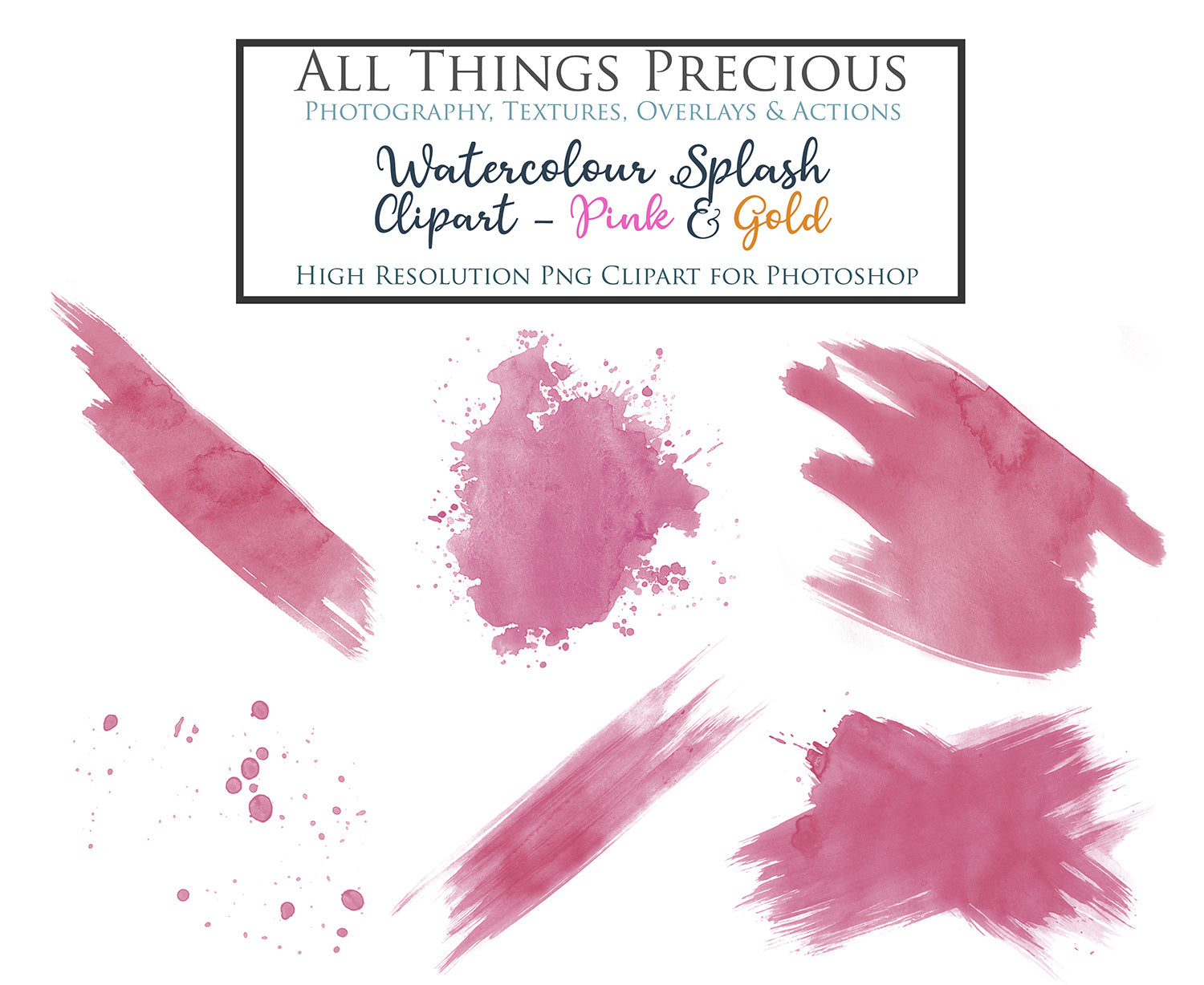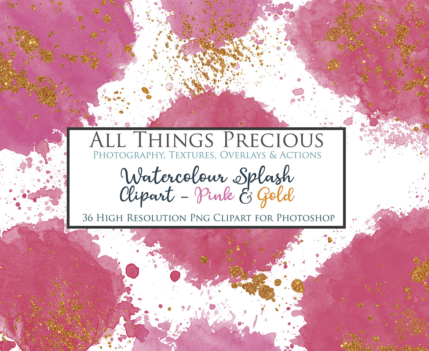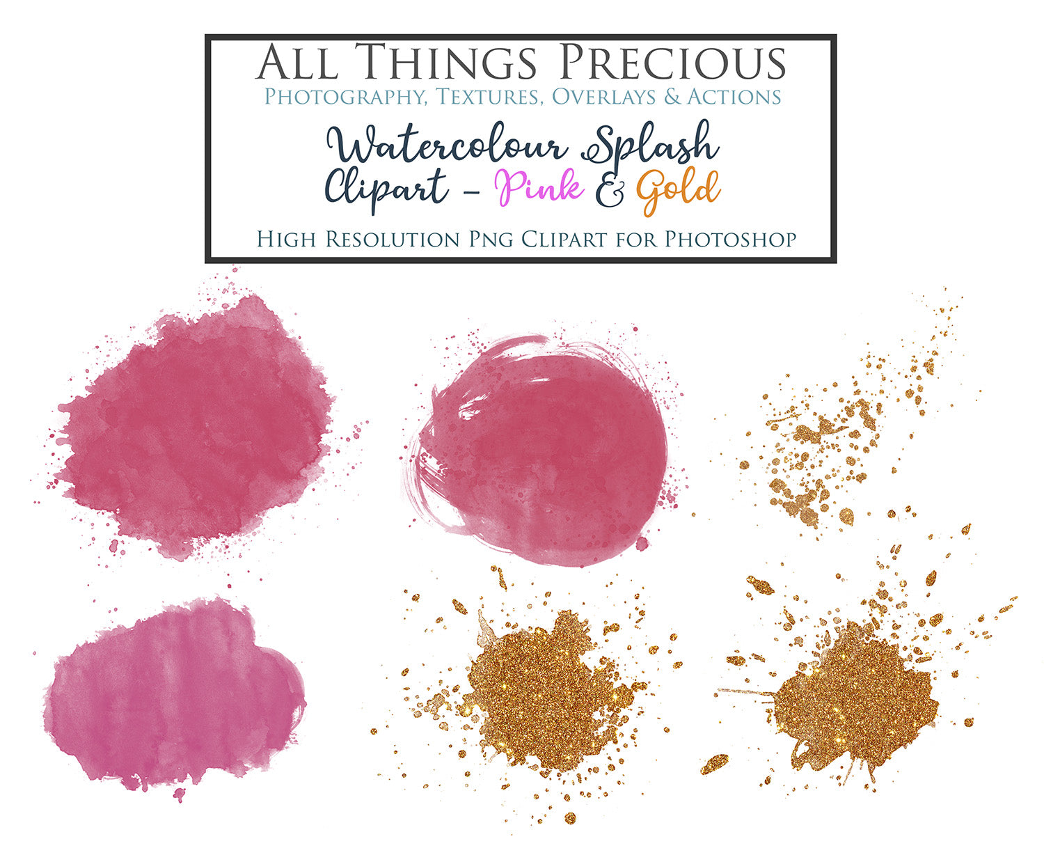 WATERCOLOUR SPLASH & SPLATTER - Gold & Pink - Clipart