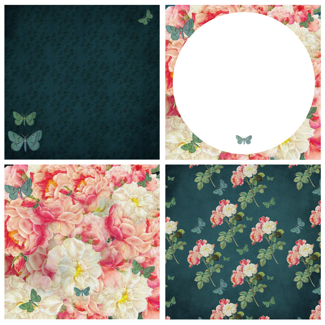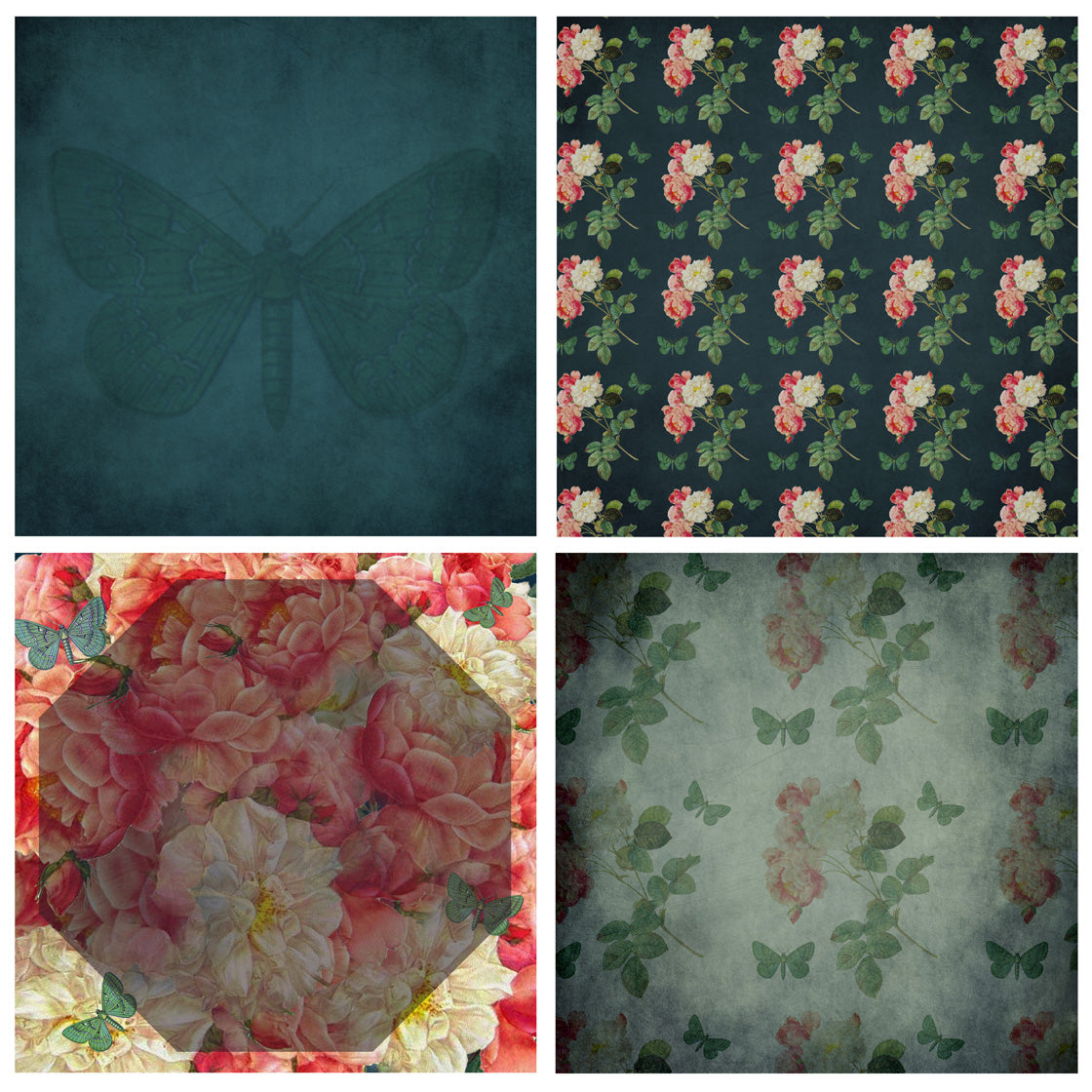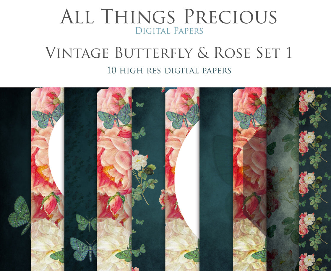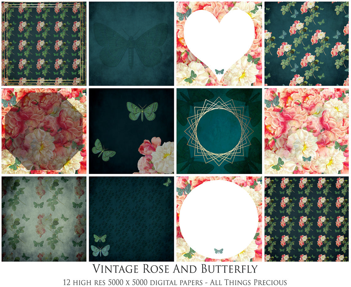 VINTAGE ROSE & BUTTERFLY Digital Papers Set 1